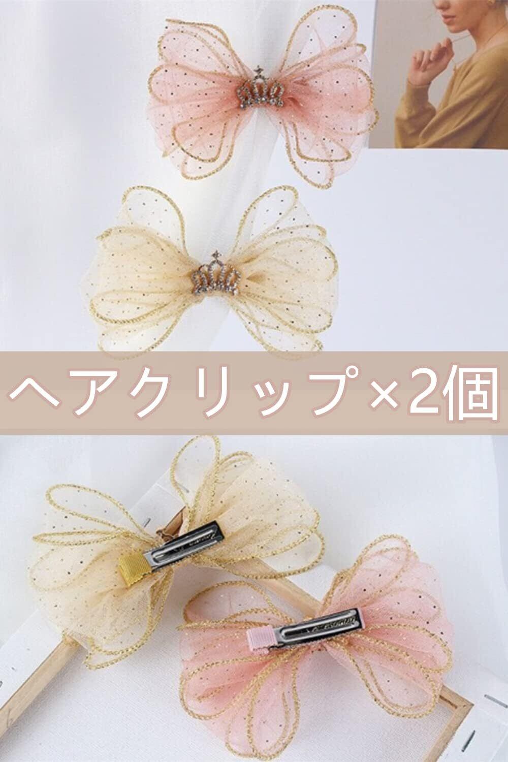 【セット内容】:ヘアクリップ×2個、色:ピンク・ライトイエロー、2色選べる髪留め リボン、合わせる自由、上品で可愛い子供リボンクリップ。