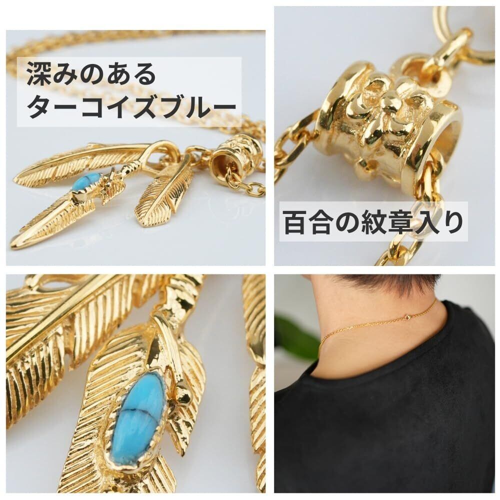 [EPIC BOLEN] [エピックボーレン] シルバー sv925 ネックレス 24K ゴールドコーティング トリプル フェザー ターコイズ 羽根 金色 3枚羽 ペンダント