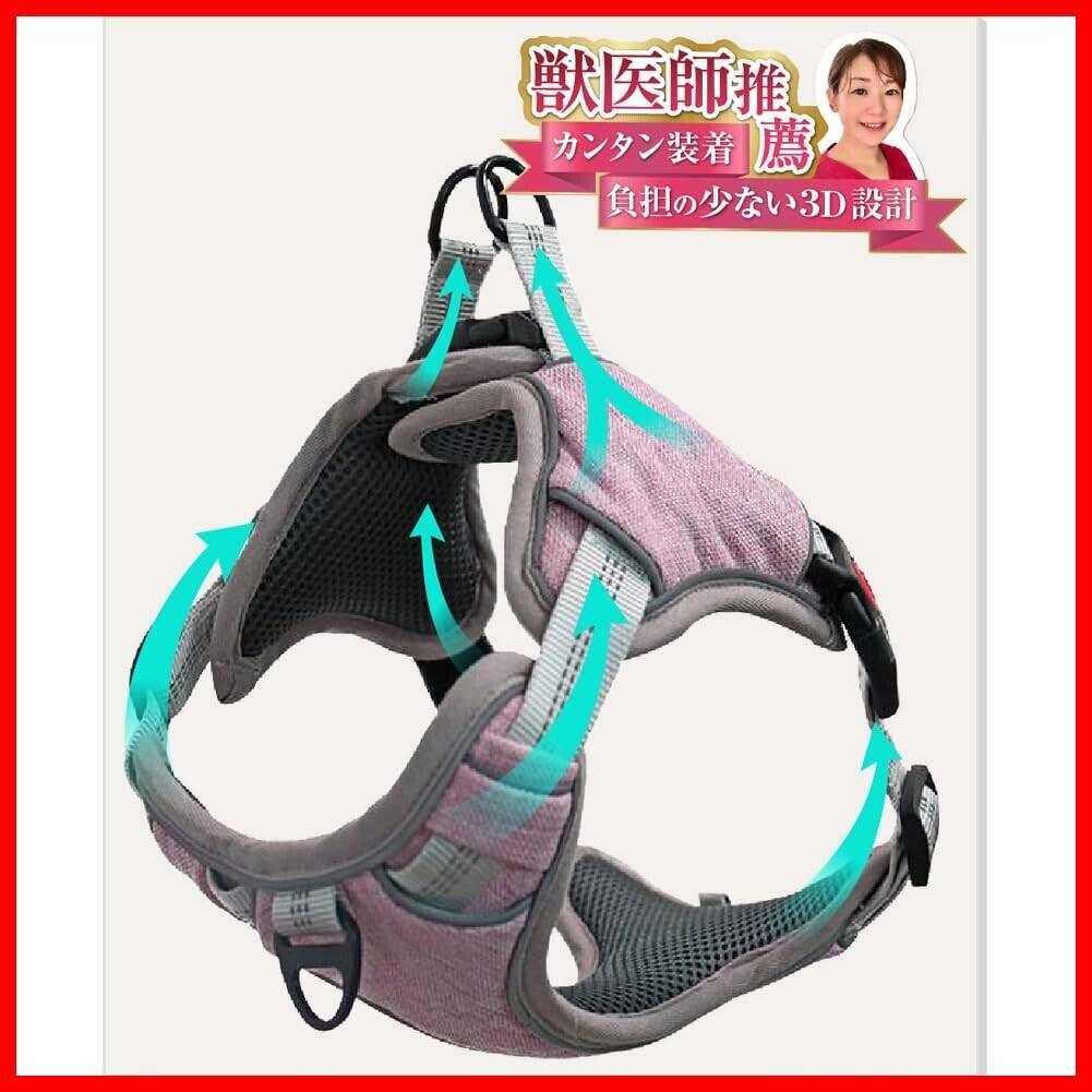 【獣医師推薦】犬 ハーネス (2ステップで簡単装着・首やお腹への負担軽減) 夜間反射材 サイズ調節可能 小型犬 中型犬 大型犬 (くすみピンク, XS)