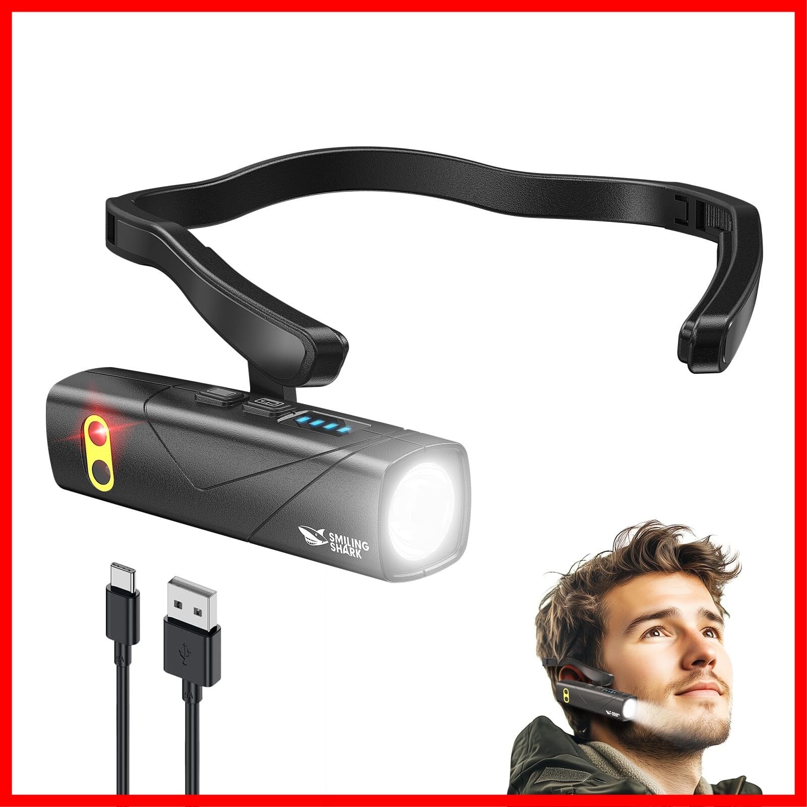 充電式 LED ヘッドライト, 【新概念耳掛け式・白色光・赤色光】 耳装着式ヘッドランプ センサー付き USB充電可能 5つの照明モード 高輝度アウトドアヘッドランプ 230°広角照明 超軽量 IPX4 防水防塵 8時間連続使用可能 キャンプ 登山 散歩 釣り 作業 停電用 防災用 最適 日本語取扱説明書