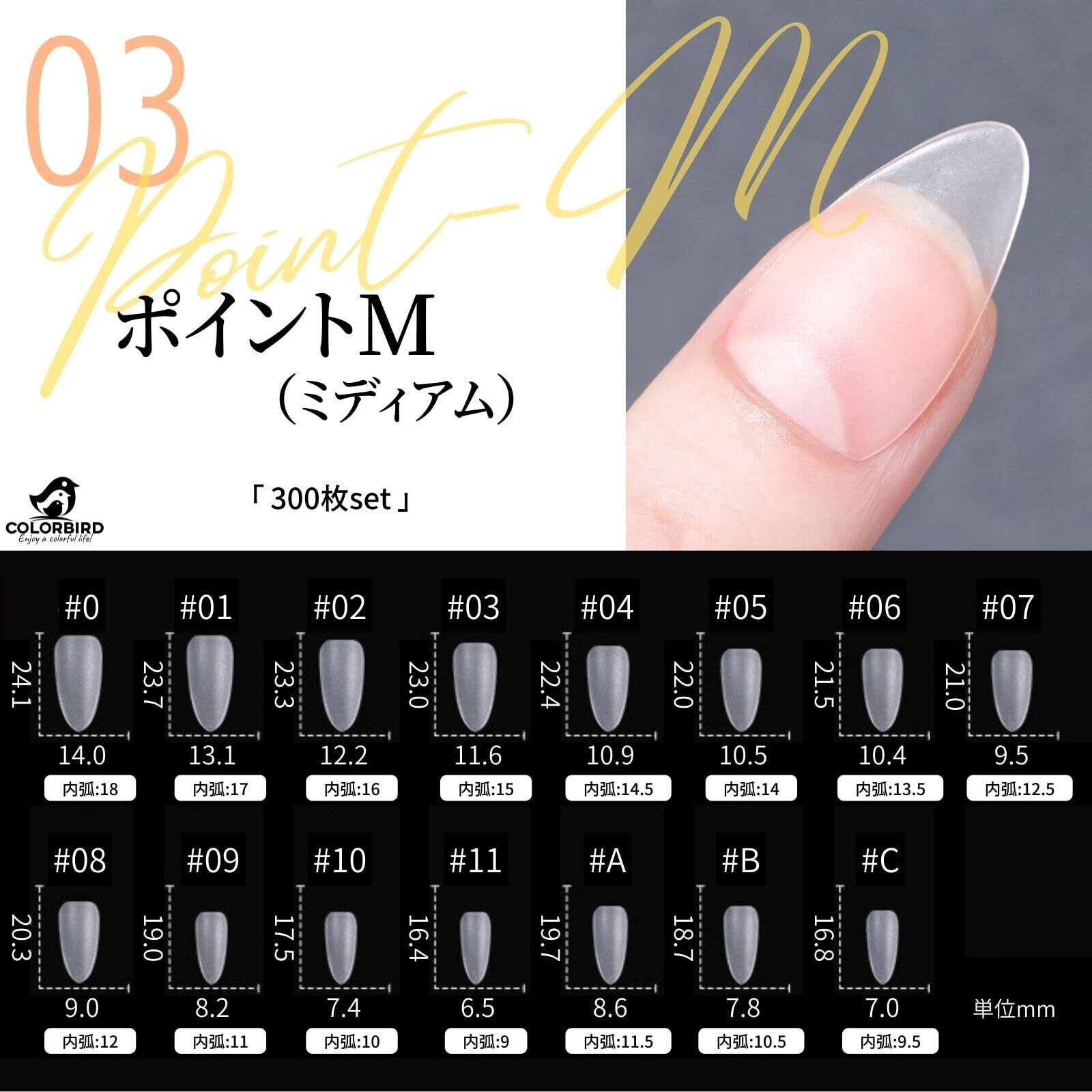 COLORBIRD 超薄型 ネイルチップ クリア サンディング済み 300ピースセット。自然な仕上がりを手軽に!