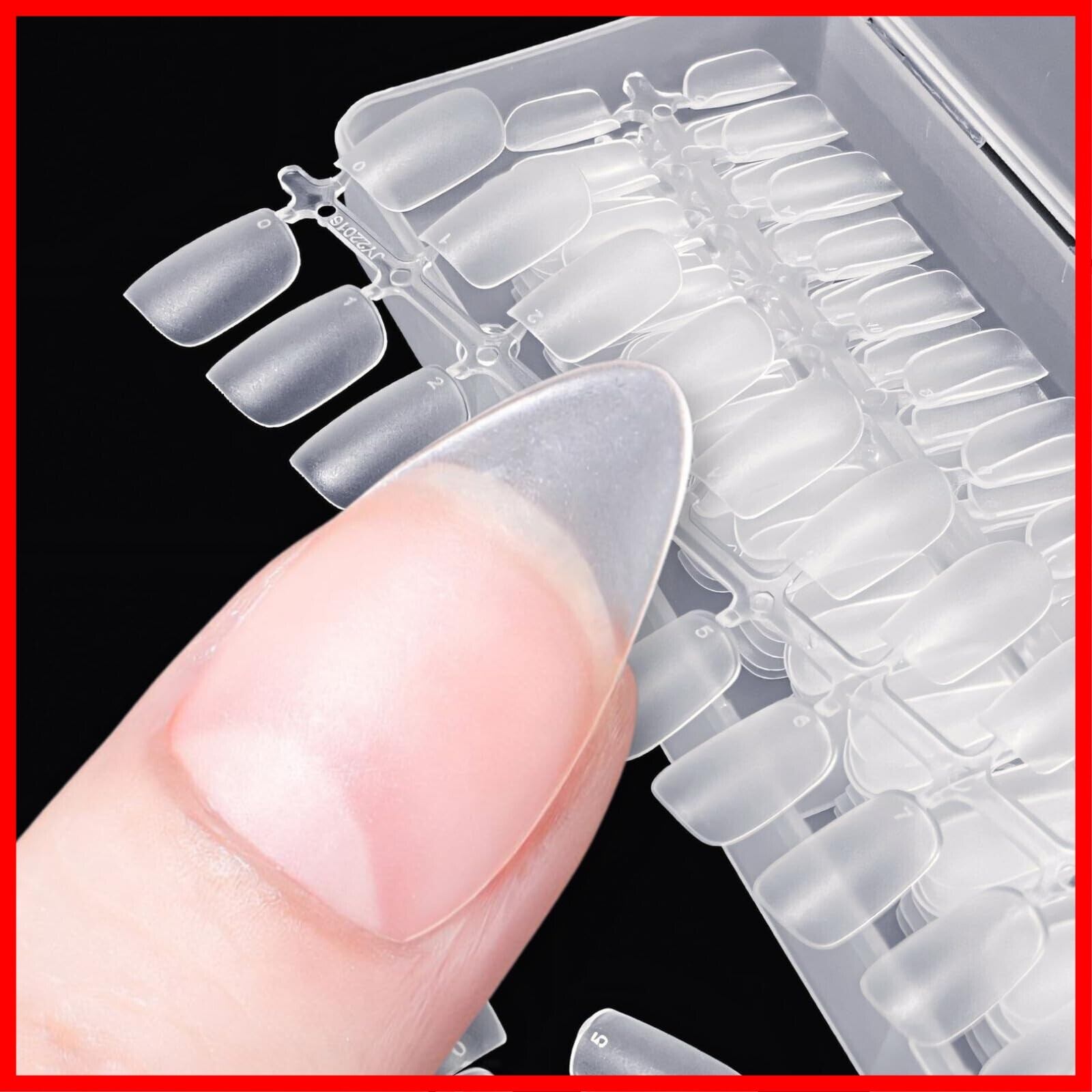 【自然なフィット感で指先を彩る】超薄型後端部(0.2mm)で自然なフィット感を実現。サンディング加工済みで、面倒な手間を省いてジェルを塗っても剥がれにくい。爪先にサイズ番号が付いており、簡単に自分の爪に合ったチップを見つけることができます。 【高品質素材で美しい仕上がり】高強度かつ強靭性のあるソフトアクリル素材を使用。曲げても折れ曲がらず、自己修復性に優れています。つや消しの表面が爪と一体感を生み出し、ジェルのりも良好。