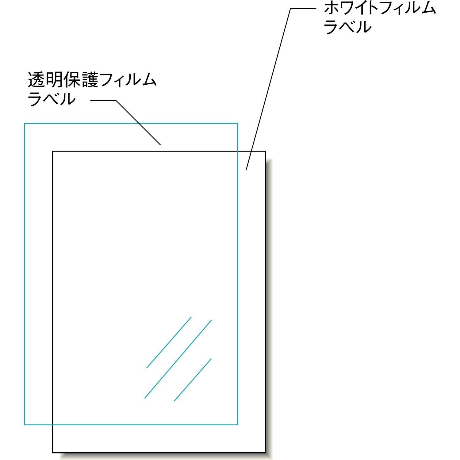 強粘着タイプ 印刷用ホワイトフィルムラベル+保護用透明フィルムラベル/材質:ポリエステルフィルム/標準総厚み:0.15mm/ラベル厚み:0.10mm カバーフィルム厚み:0.07mm