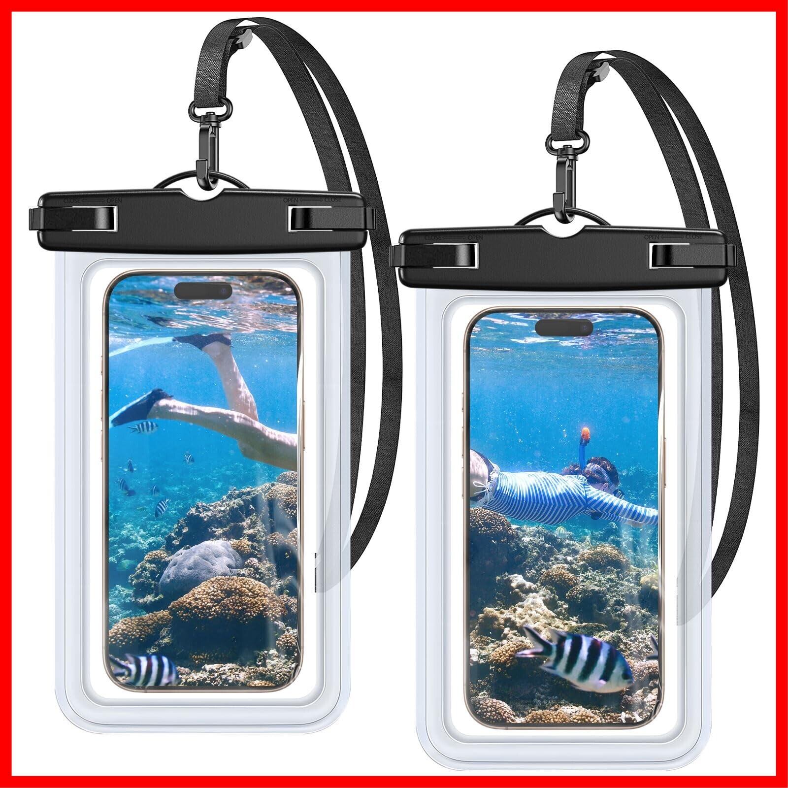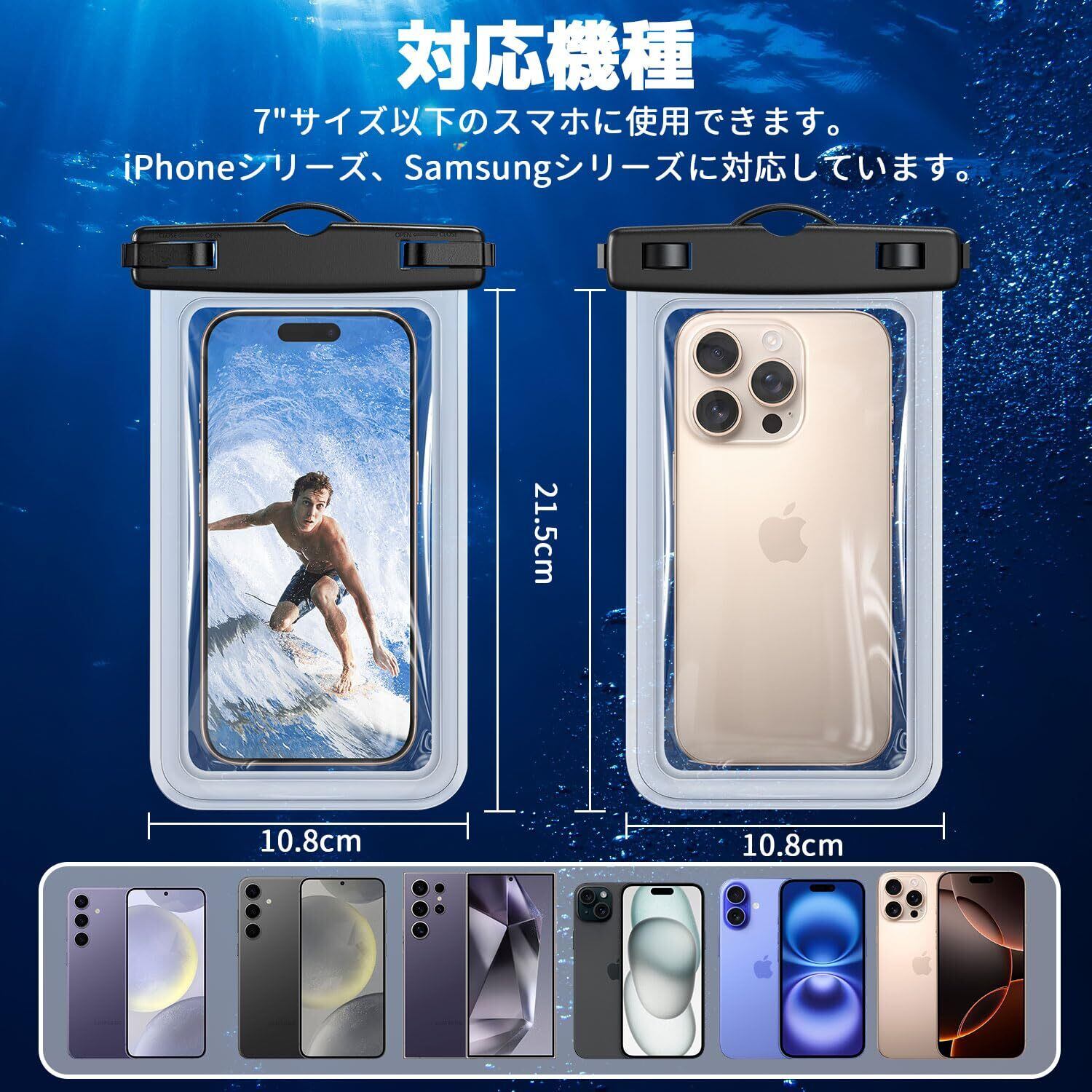 スマホ 防水ケース 海 【2枚セット&熱圧技術】スマホケース IPX8認定 水中・水上で操作できる 良いタッチ感度 指紋認証/顔認証 ロックがしやすい サイドボタンが押しやすい ストラップ付き 首掛け 高透過率 7インチ以下全機種対応 防水カバー 水中撮影 お風呂 釣り プール携帯 海上アスレチックパークなど適用(クリア2枚)