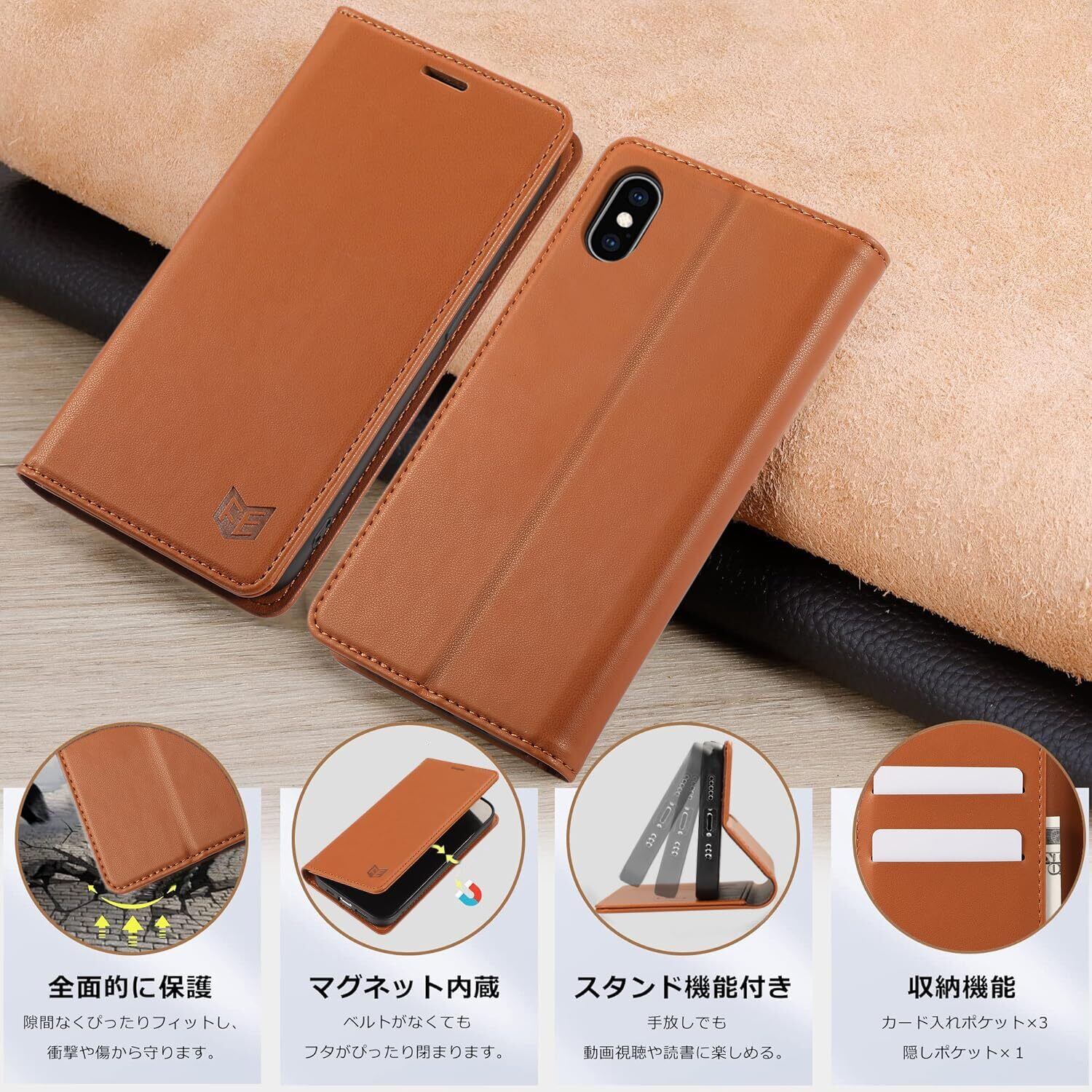 iphone xr ケース 手帳型 IphoneXR 手帳 ケース 耐衝撃 カード収納 マグネット式 スタンド機能付き アイフォン xr 携帯カバー 全面保護 スマホケース 6.1インチ対応 ブラウン