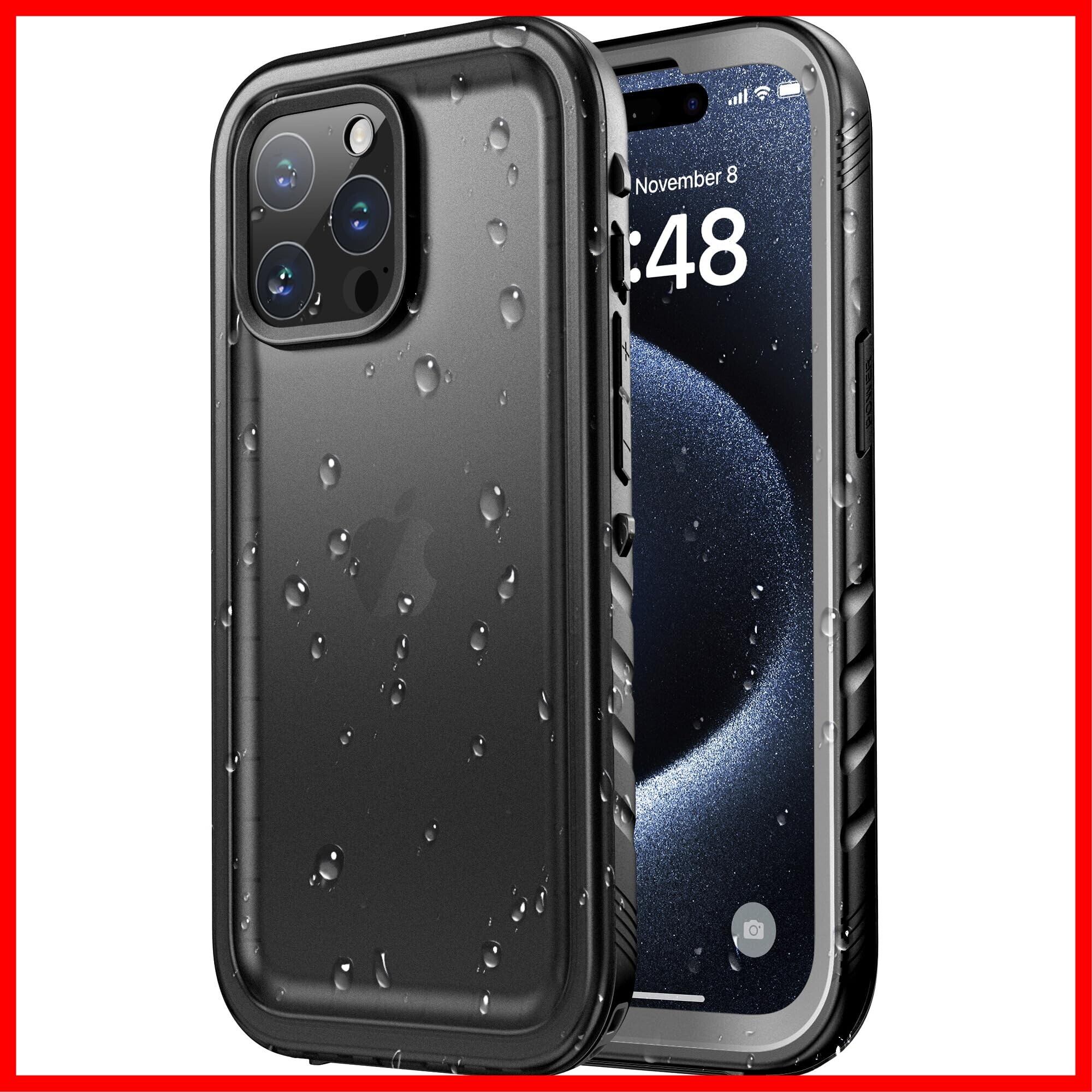 SPORTLINK iPhone 15 Pro 用 防水ケース iPhone 15 Pro 用 耐衝撃 ケース 完全防水 IP68防水等級 防雪 防塵 耐衝撃 360°全面保護 QI充電 フェイスID 認証対応 操作便利 超薄型 ストラップ付き 雨の日 iPhone 15 プロケース お風呂 6.1インチ 適用 (ブラック)