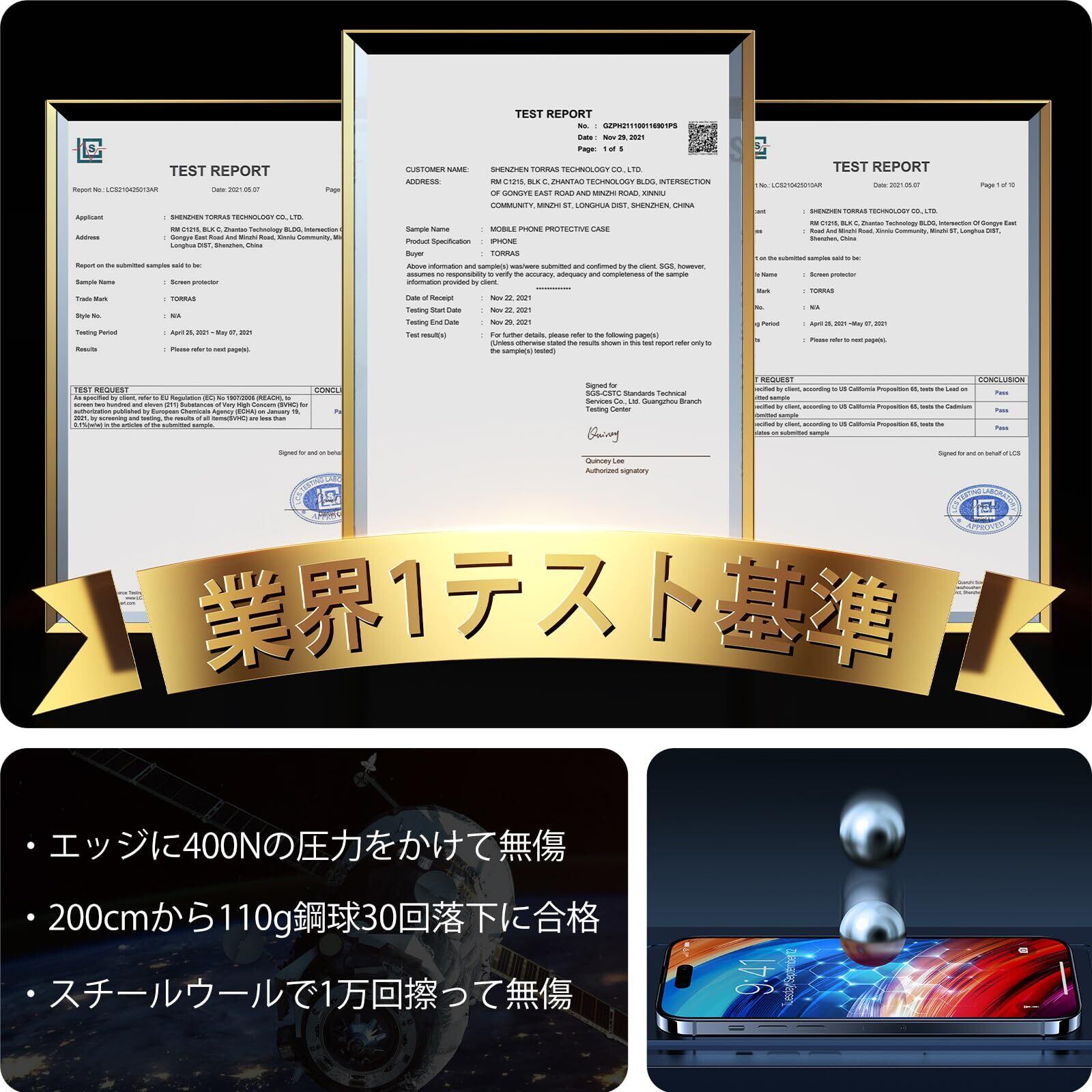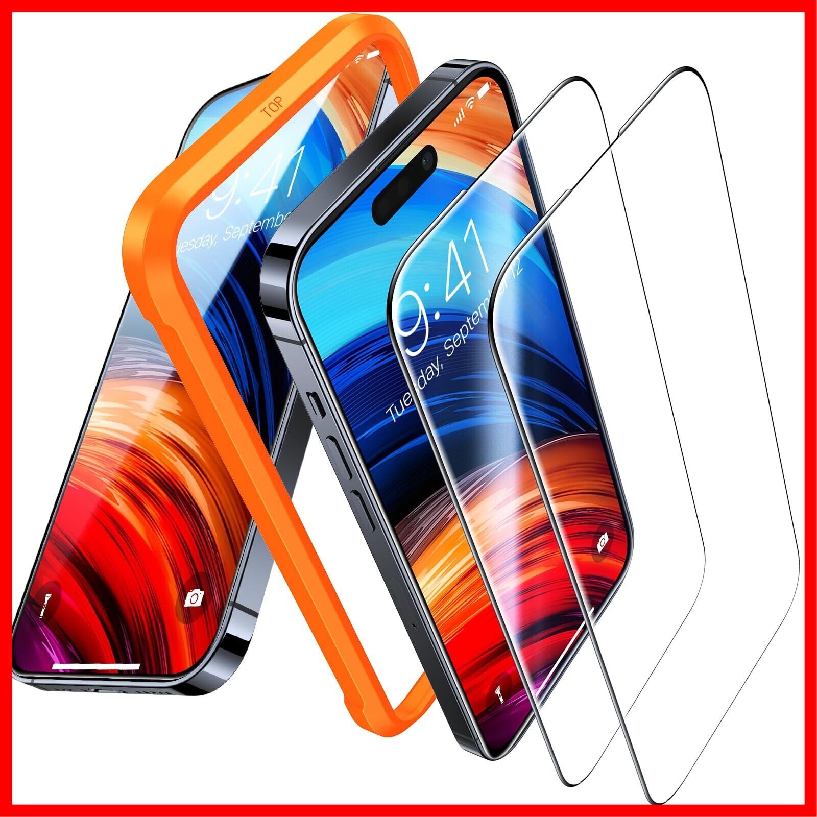 「米軍規格・画面を綺麗に」TORRAS iPhone15Pro 専用 ガラスフィルム 航空宇宙材料 米軍MIL規格 全面保護 強化極細黒縁 9H越え 高精度ガイド枠 2枚セット アイフォン15プロ 用 フィルム GlassGo Series