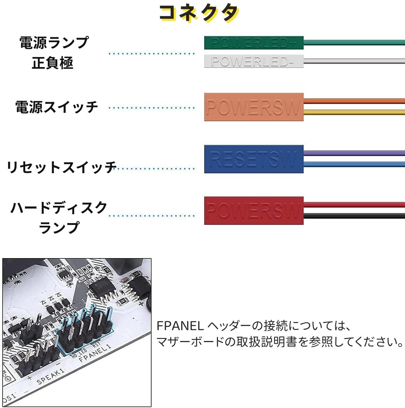 3.取り付けはマザーボードのフロントパネルコネクタに各配線を接続するだけ。