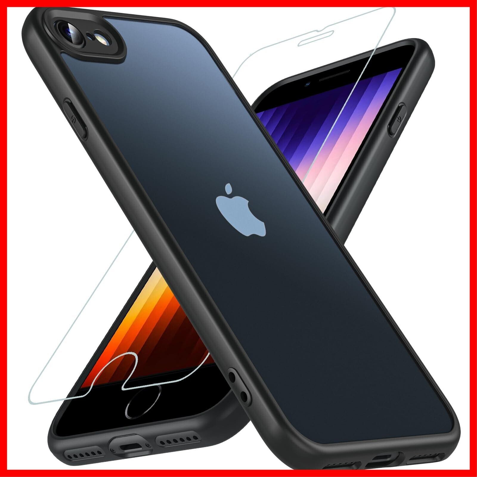 OWKEY iPhone SE ケース iPhone SE3 ケース iPhone SE2 ケース iPhone8 ケース【ガラスフィルム付き】半透明 薄型 軽量 アイフォンse スマホケース 米軍MIL規格 全面保護 耐衝撃 レンズ保護 iPhone7ケース ストラップホール 黄ばみなし 耐久性 iPhone SE2/SE3/8/7 用ケース 4.7インチ ブラック | hananoki