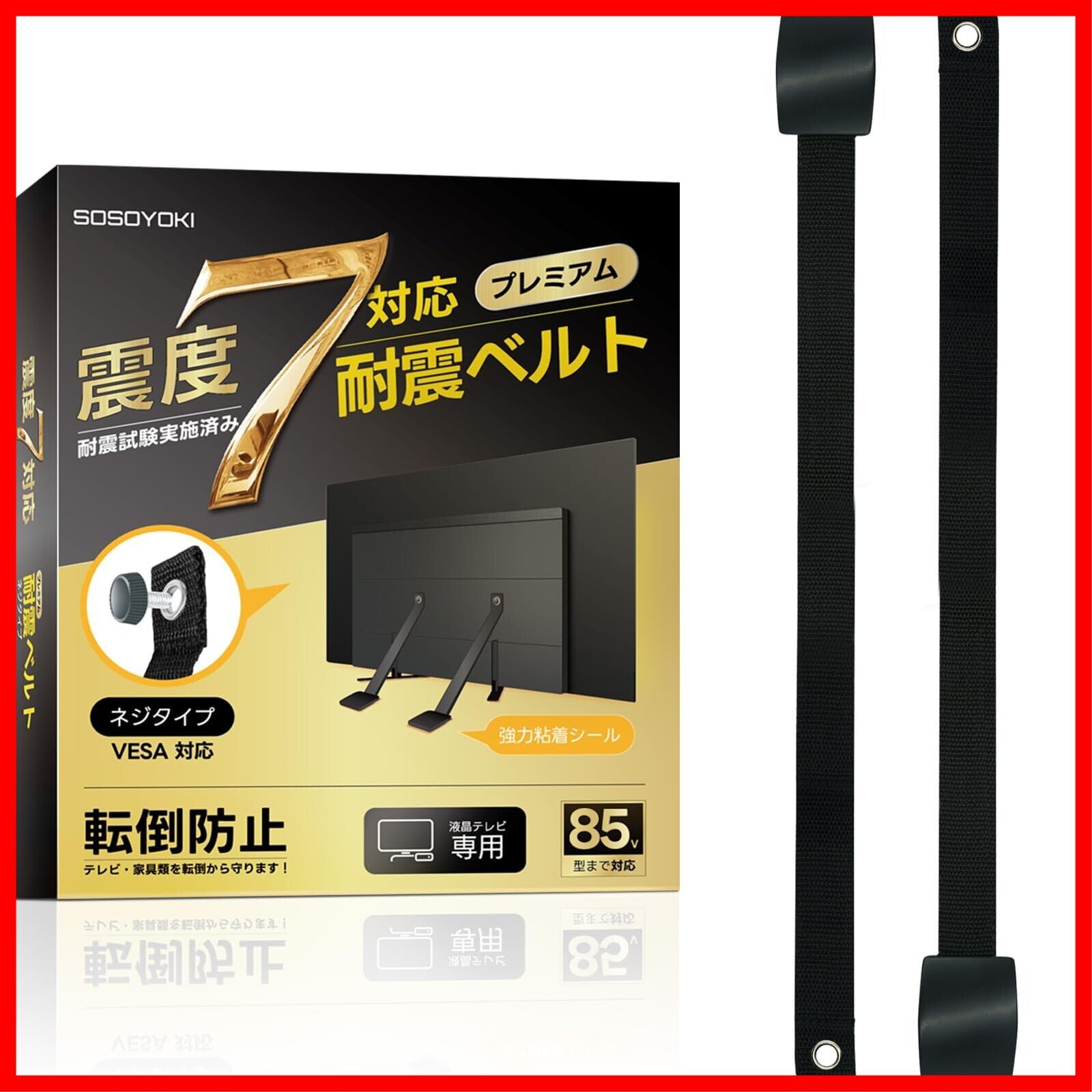 耐震ベルト テレビ用 耐震度7 転倒防止 液晶モニター 地震対策 工具不要 ラクラク設置 落下防止 長さ調整可能 85インチまで 2本セット (ネジタイプ)