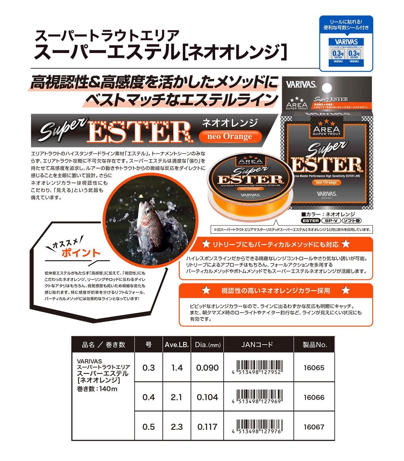 バリバス(VARIVAS) スーパートラウトエリア スーパーエステル 140m ネオオレンジ