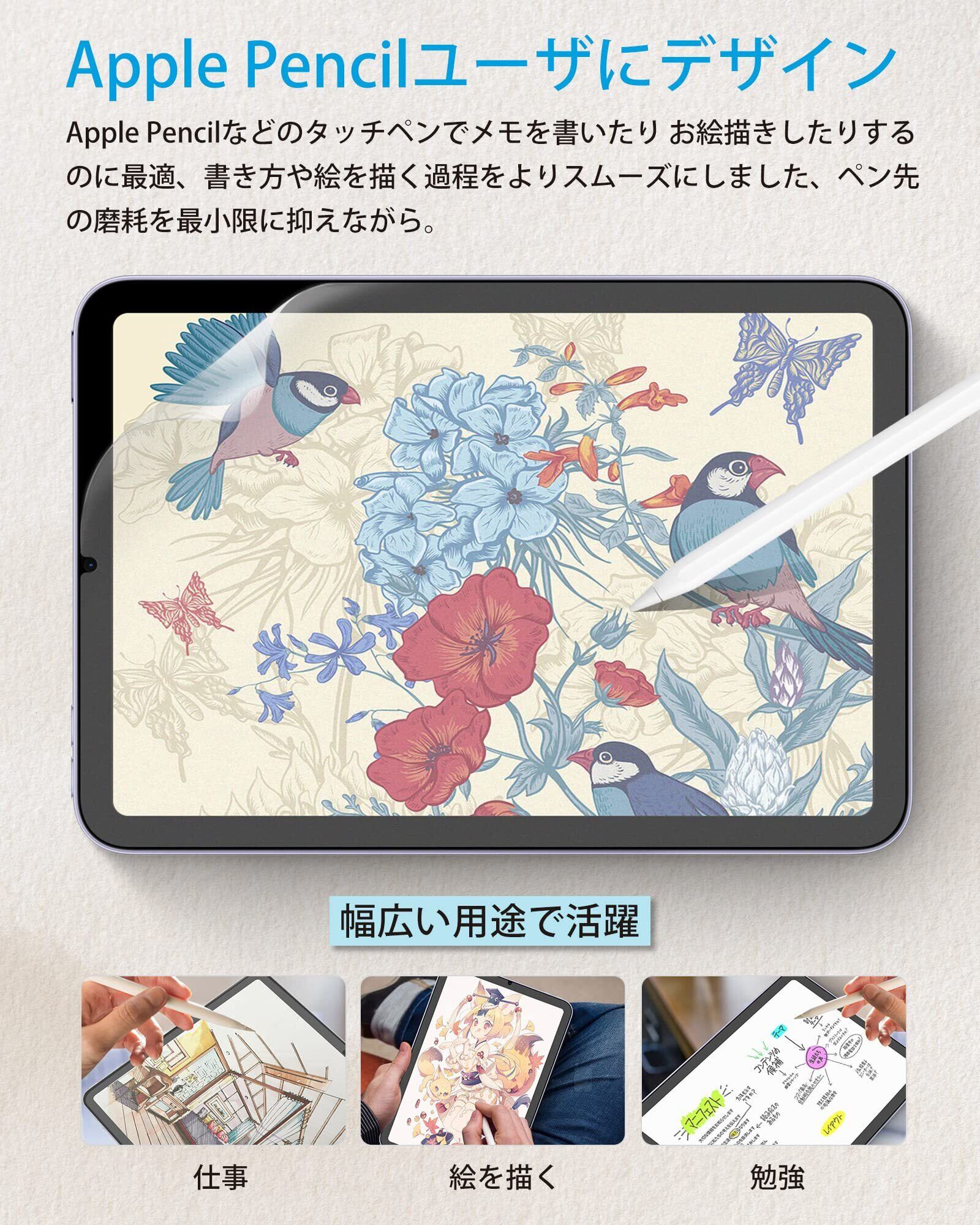 MOBDIK【2枚セット】iPad Mini 7 (A17Pro) 2024 / iPad Mini 6 (第6世代) 2021 用 ペーパーライクフィルム【紙のような描き心地】【反射防止アンチグレア【【Apple Pencil対応】【指紋&気泡防止】保護フィルム