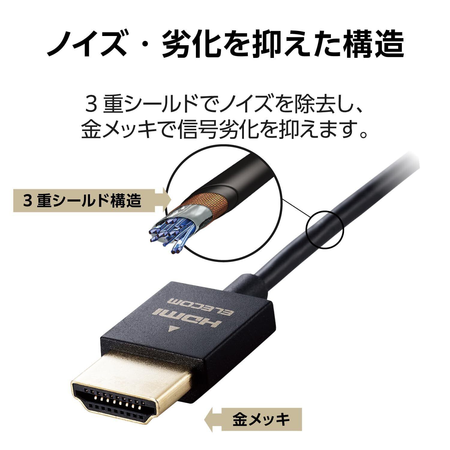 エレコム HDMI ケーブル 1m スーパースリム ハイスピード 4K・2K(30Hz) ARC対応 【HIGH SPEED with ETHERNET認証済み】 ECDH-HD14SS10BK | hananoki