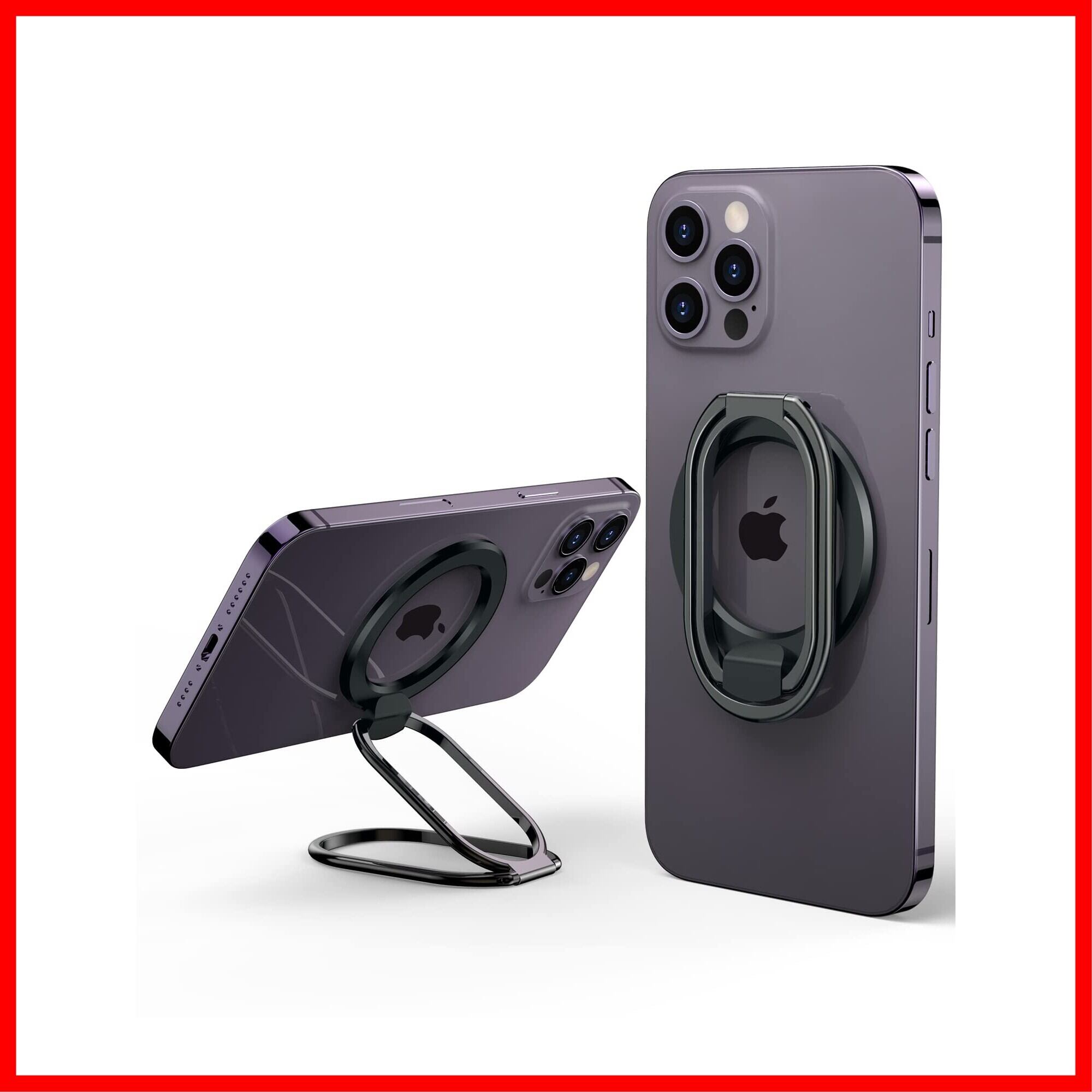 【最新アップグレード構造 】 enGMOLPHYバンカーリングMagSafe対応 取り外し可能 マグネットリングスタンド金属製 2段階調整 折りたたみ 磁気フィンガーリングホールド 耐久性と安定性, iPhone 12/13/14/15シリーズ用 マグセーフ対応アクセサリー(黒)