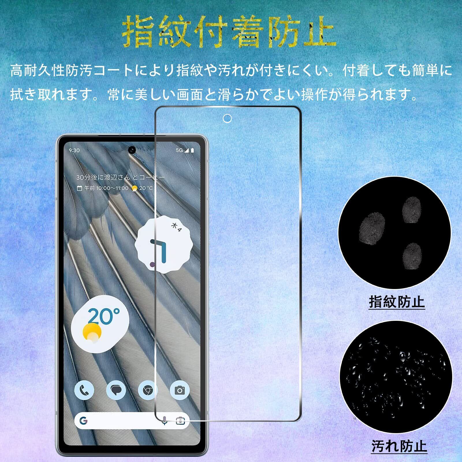 【適用機種】:対応 Google Pixel 7A 5G 用のガラスフィルム。耐久性の高い防汚フィルムには特殊コーティングが施されており、指紋や汚れがつきにくい。超薄保護フィルムの明瞭な高透過率で、自然に見えます。