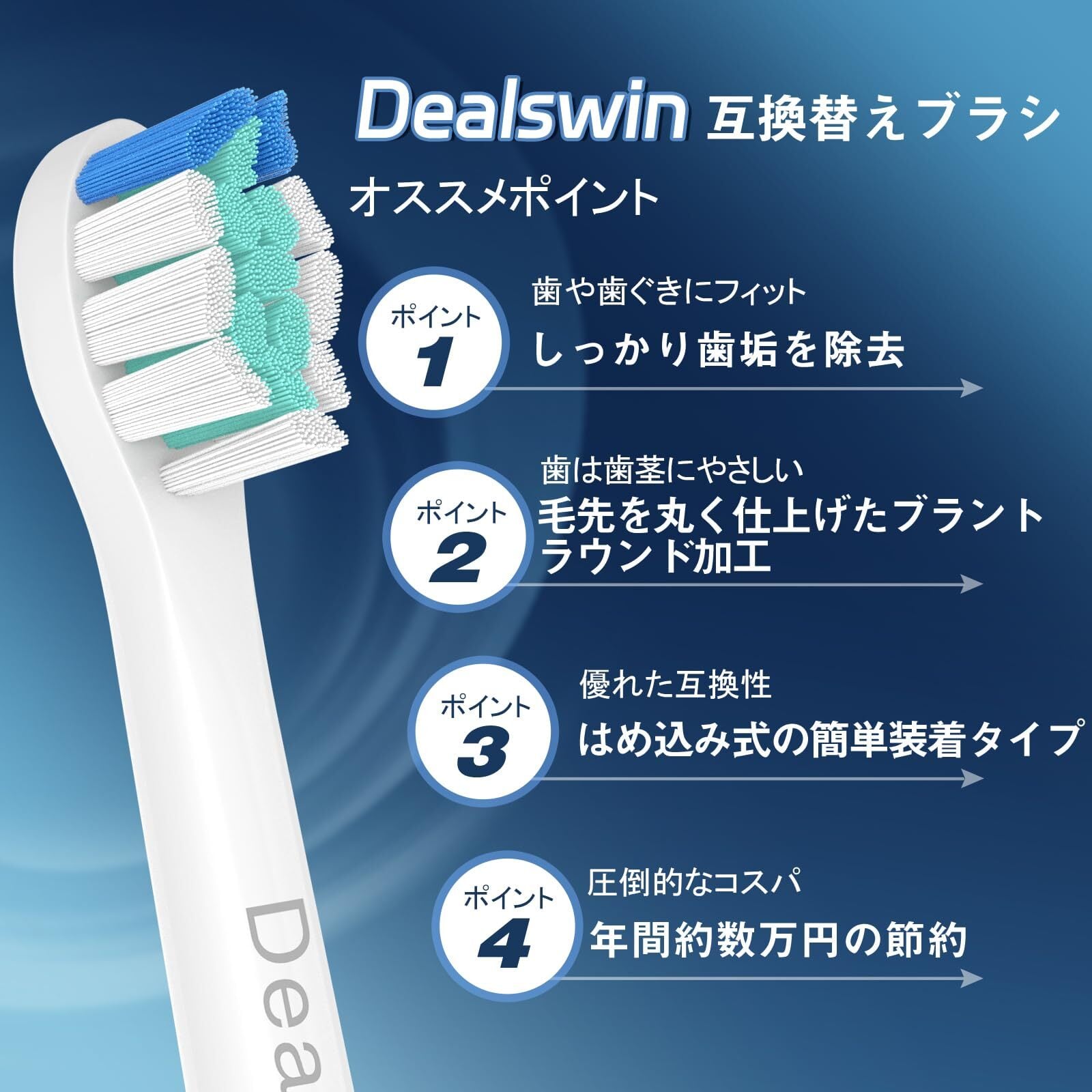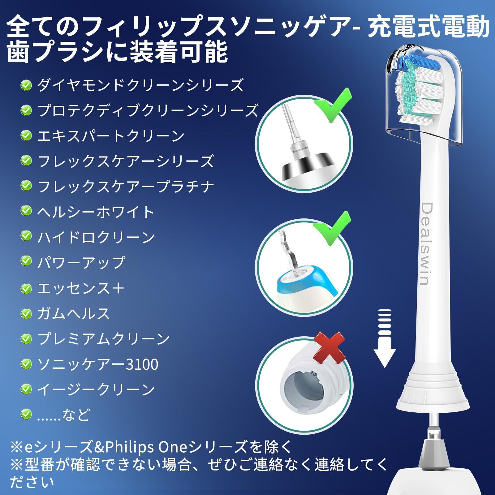 【完全互換】Dealswinのソニックケア 用の 替えブラシは、フィリップスソニッケアーのダイヤモンドクリーン、プロテクトクリーン、エキスパートクリーン、イージークリーン、ハイドロクリーン、ヘルシーホワイト、フレックスケア、ガムヘルス、プラークコントロール、クリーンケア、プレミアムクリープレックスケアプラスなど、全ての対応機種で使用可能です。※eシリーズおよびPhilips Oneシリーズには対応していません。型番に不明点があれば、お気軽にお問い合わせください。