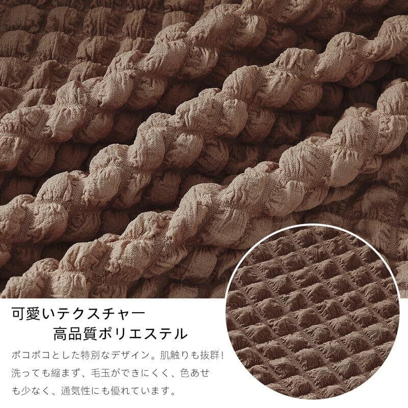 可愛くて高品質なポリエステル素材:ポコポコとした独特なテクスチャーが特徴で、丈夫でありながら柔らかく、肌触りも抜群です。キズや汚れを防ぎ、繰り返し洗っても縮まず、毛玉ができにくく、色あせも少なく、通気性にも優れています。弾力のある素材が様々な形やサイズのソファにしっかりフィットし、かけるだけソファカバー、ズレがない快適にお使いいただけます。長期間使用できる高品質な素材です。