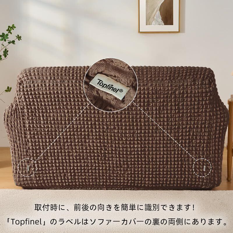 一人でも簡単に取り付け:下側には一周する幅広ゴムがついており、伸縮性、耐久性、滑り止め効果に優れています。背面両側にはラベルが付いていて、取付時に前後の向きを簡単に確認できます。ソファを持ち上げる必要がないので、女性一人でも簡単に取り付けが可能です!簡単に取り外して洗えるので、ソファをいつも清潔に保てます。