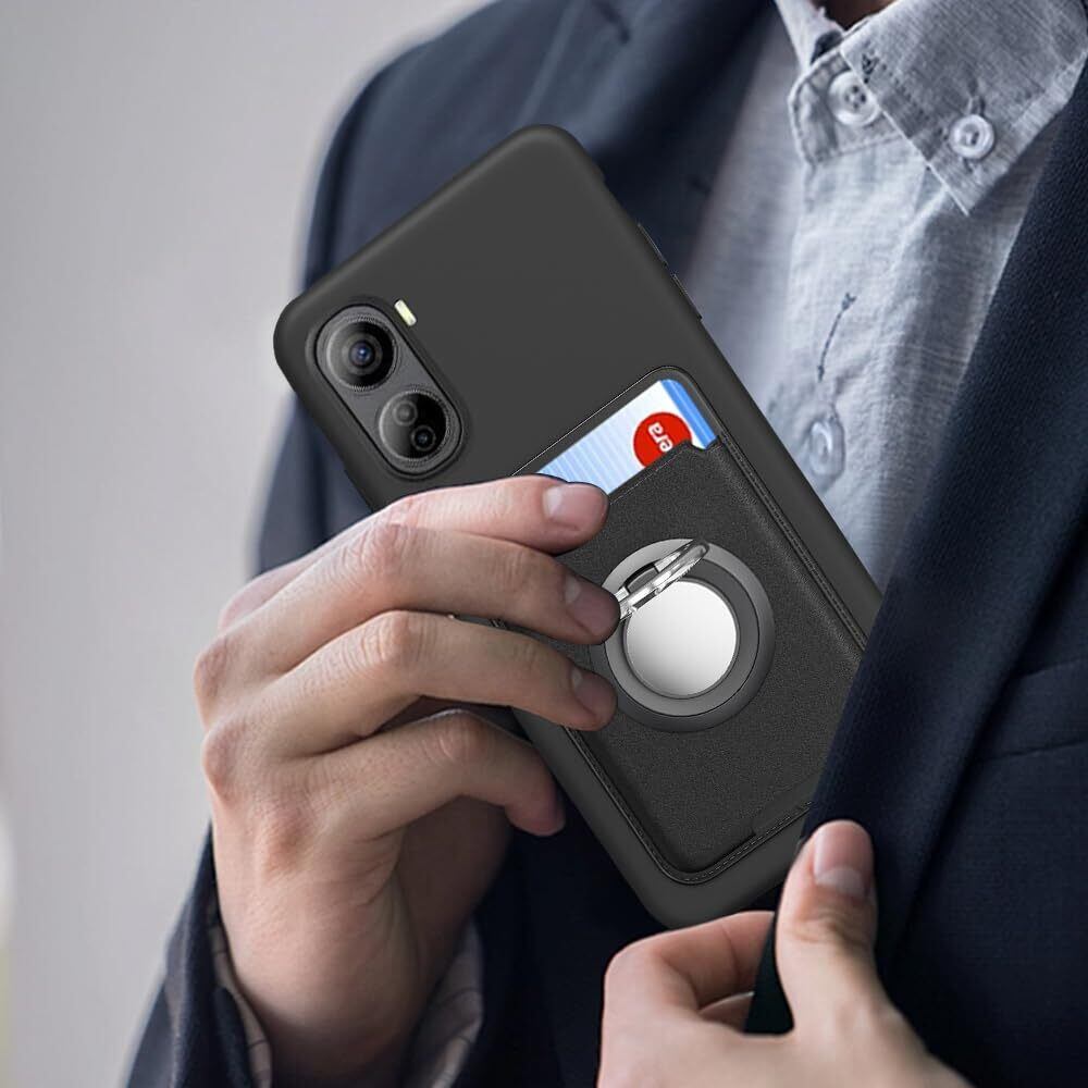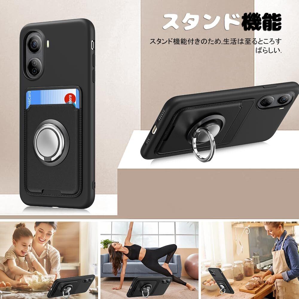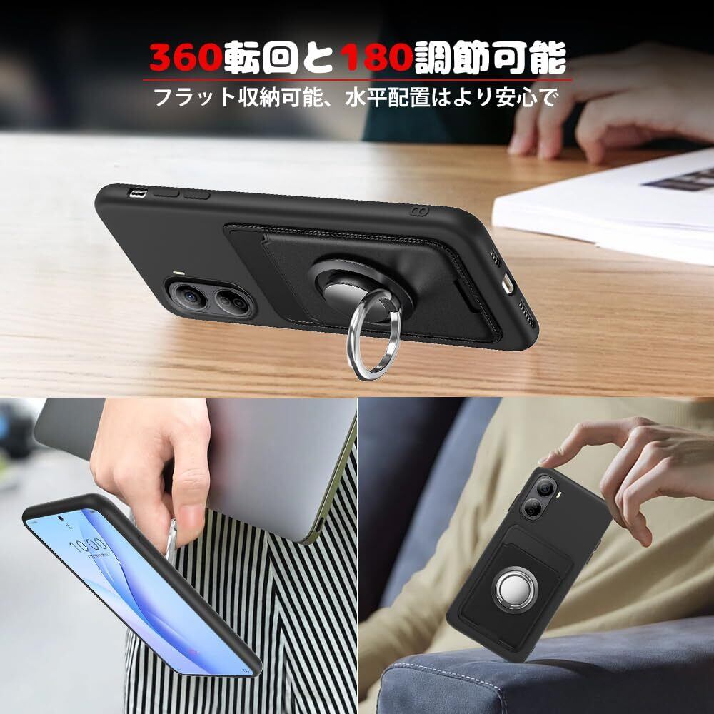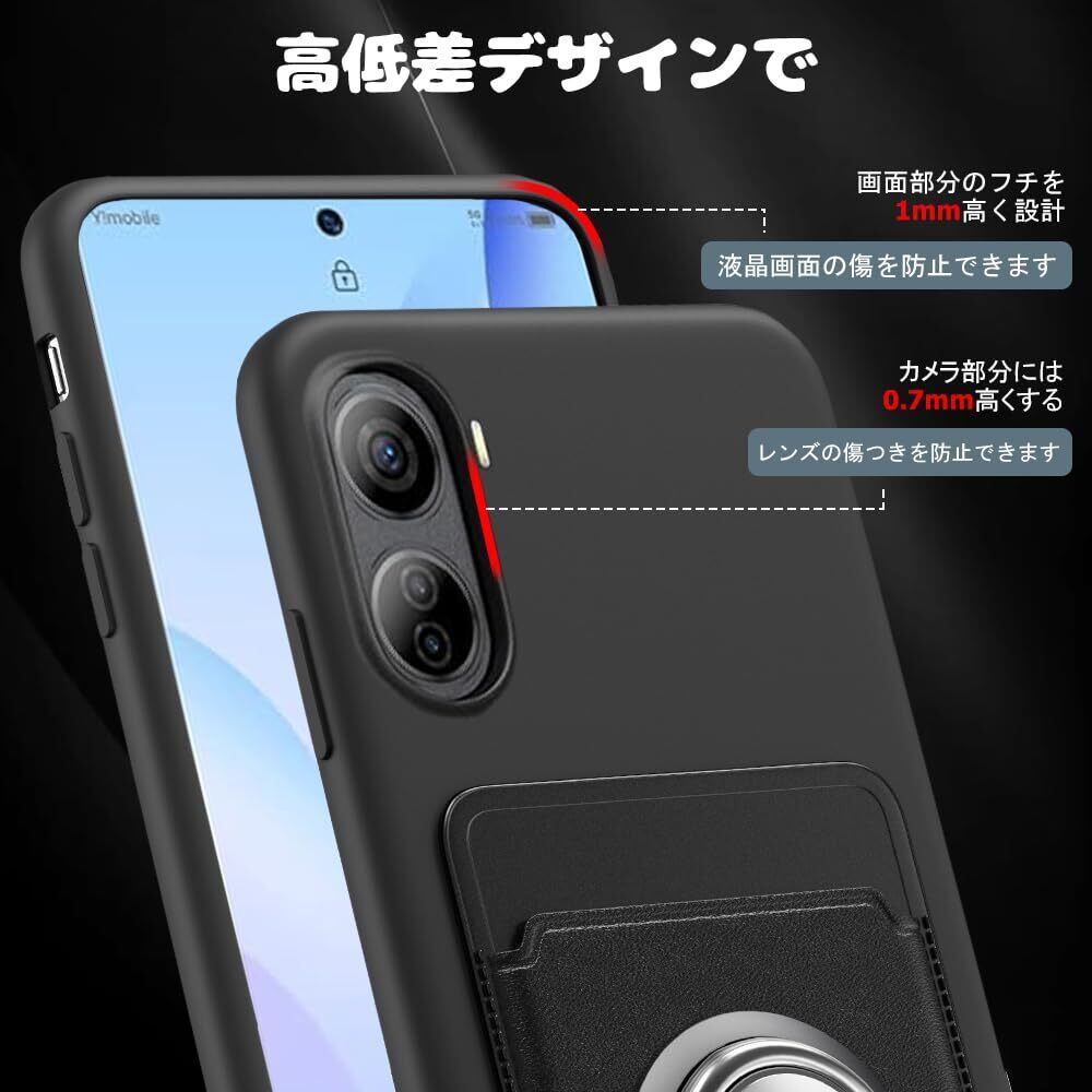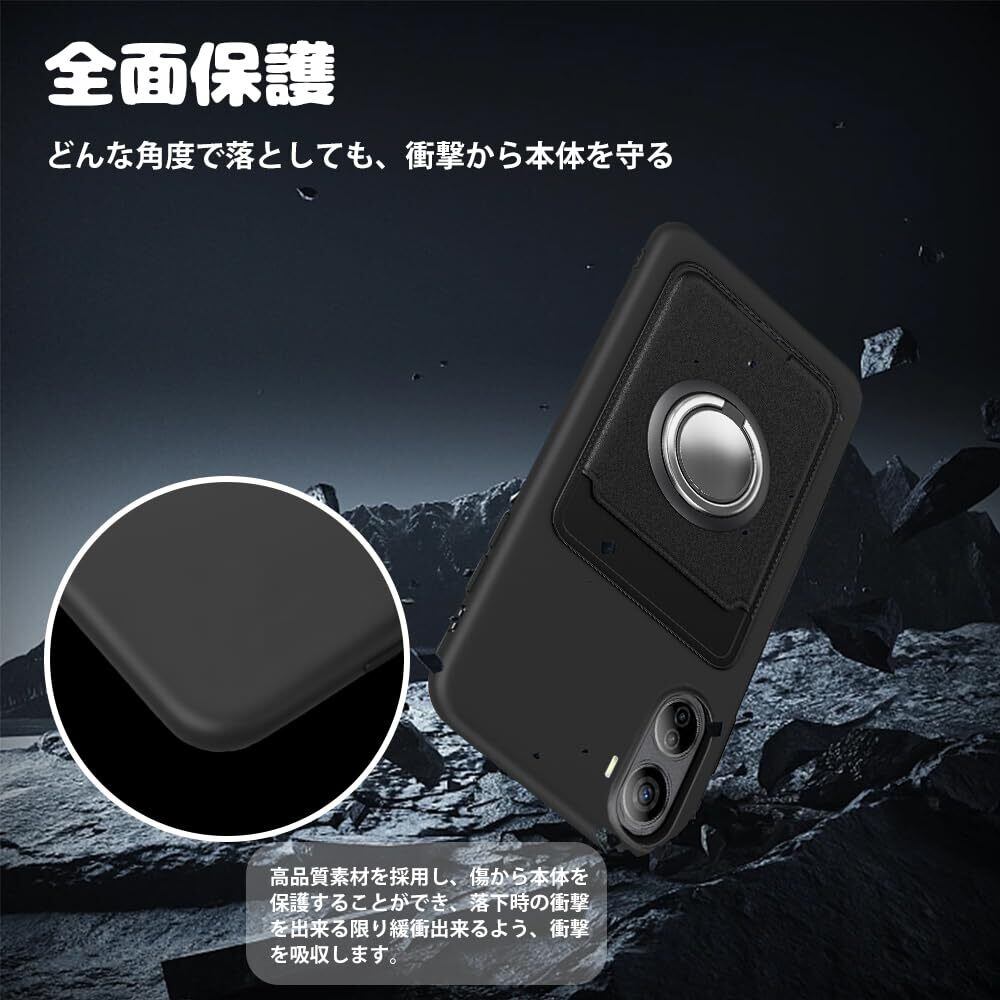 ZTE Libero 5G IV ケース カード収納 リング付き 保護カバー リベロ 5G 4 ケース リング スタンド付き ストラップホール付き シリコン スタンド機能 マット質感 滑り止め 指紋防止 黑