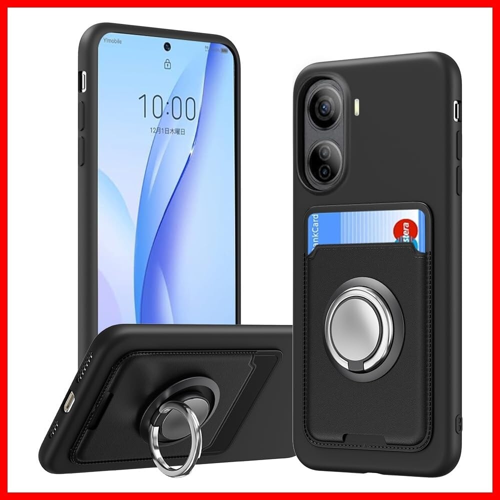 ZTE Libero 5G IV ケース カード収納 リング付き 保護カバー リベロ 5G 4 ケース リング スタンド付き ストラップホール付き シリコン スタンド機能 マット質感 滑り止め 指紋防止 黑 | hananoki