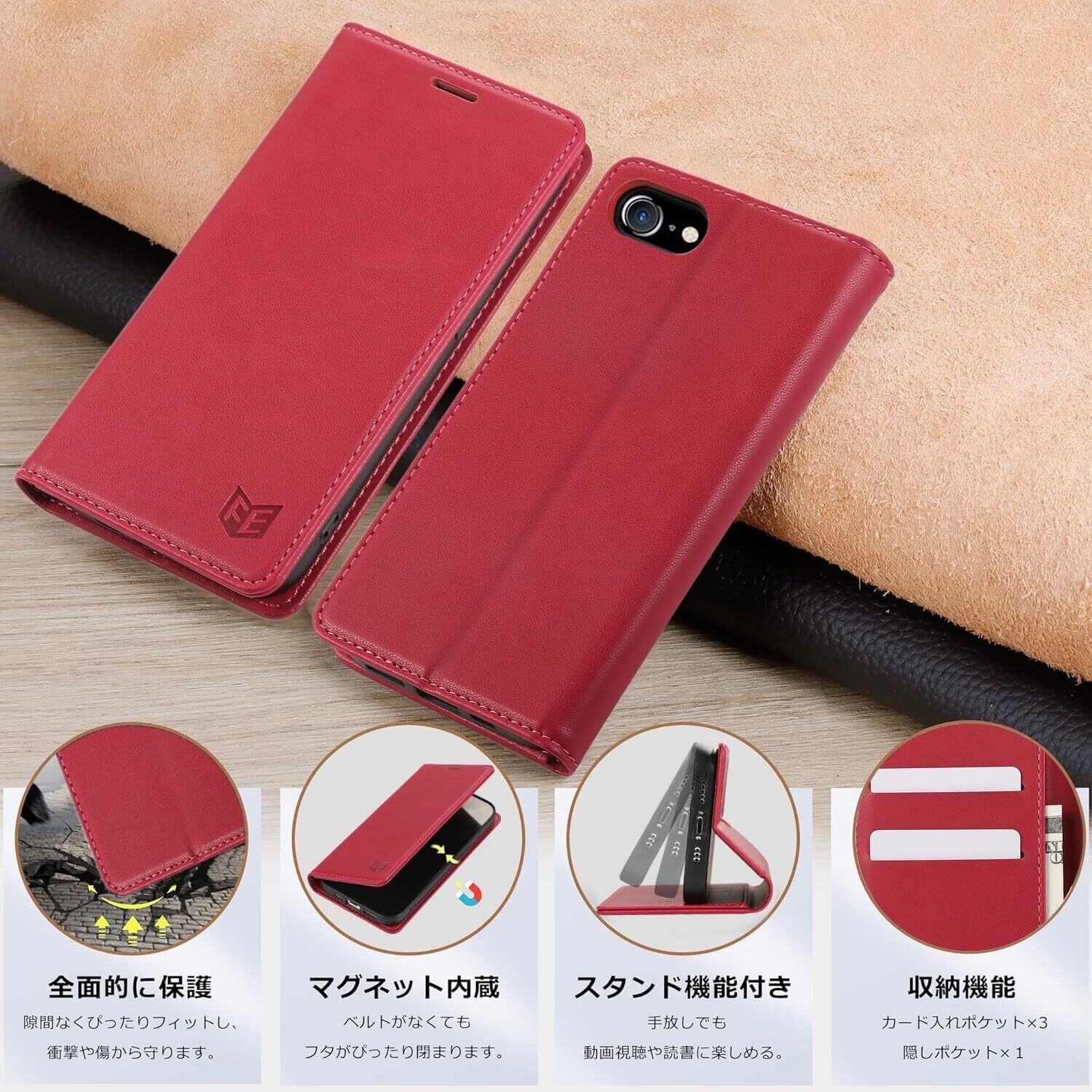 iphone se 第3世代 手帳型ケース se 2020 ケース手帳型 iPhone8 ケース iPhone 7 手帳 iPhone se3 スマホケース カード収納 横置きスタンド機能 TPU素材 衝撃吸収 全面保護 iPhone 7/8/SE2 /SE 2022 4.7インチ対応 ,ローズレッド | hananoki