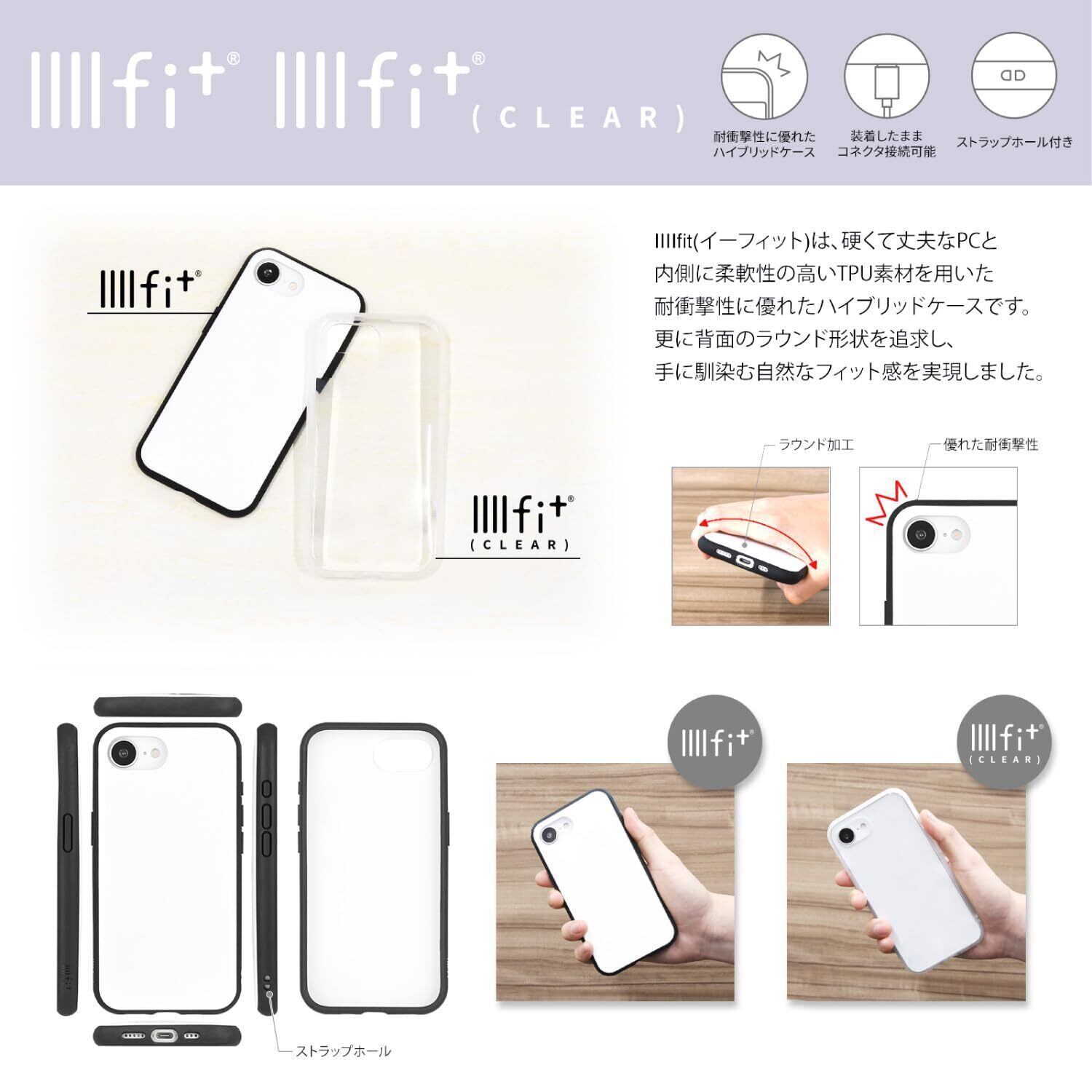 PC+TPU一体成型のハイブリッド構造による耐衝撃タイプ。キズを防ぎ、軽微な振動や衝撃から守ります。