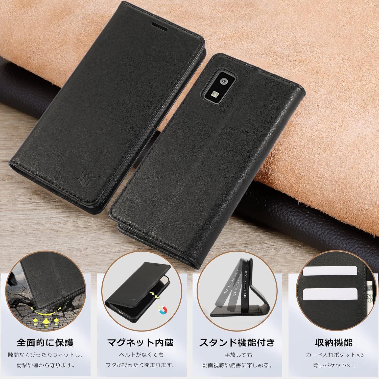 AQUOS Wish SHG06 手帳型ケース aquos Wish2 SHG08 ケース手帳型 aquos wish shg06 A104SH SH-M20 手帳 aquos wish2 shg08 A204SH SH-51C 財布型 スマホケース カード収納 横置きスタンド機能 TPU素材 衝撃吸収 全面保護 ブラック