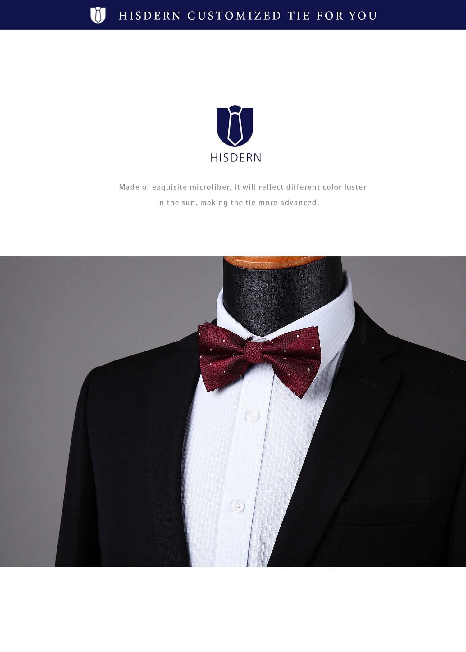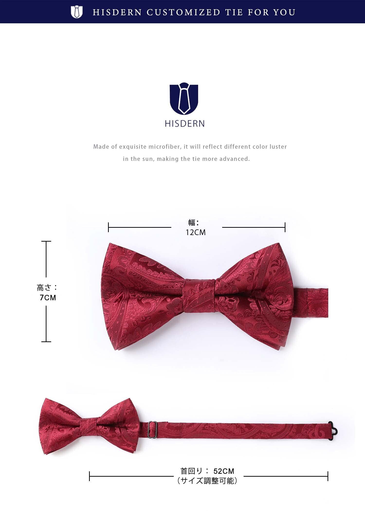 [HISDERN] 蝶ネクタイ メンズ ボウタイ ワンタッチ チーフ付き 大人 結婚式 フック式 簡単着脱 調節可能