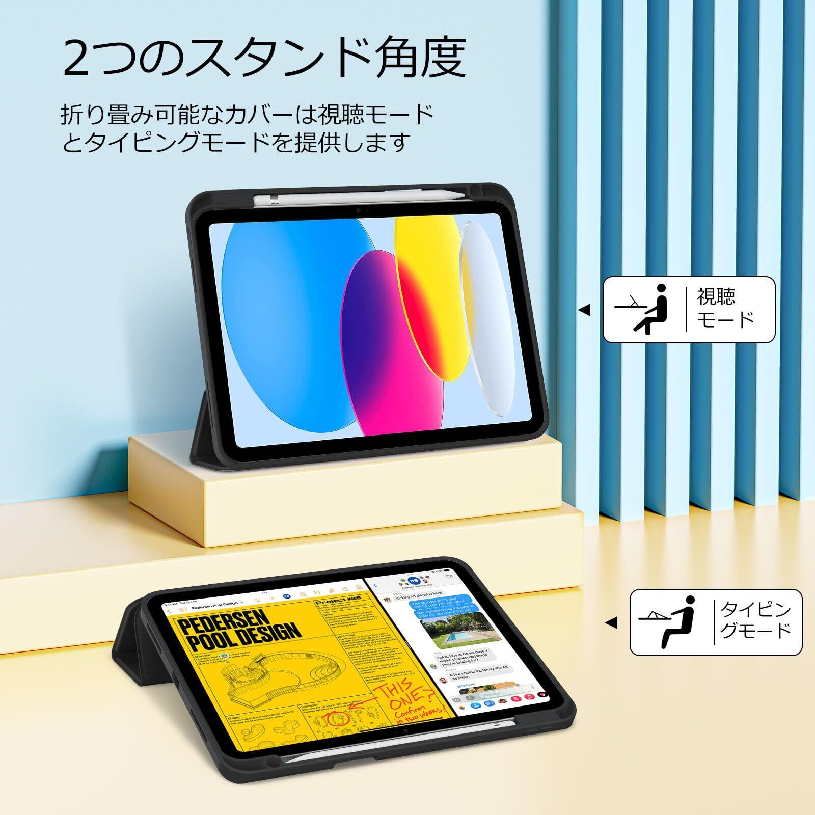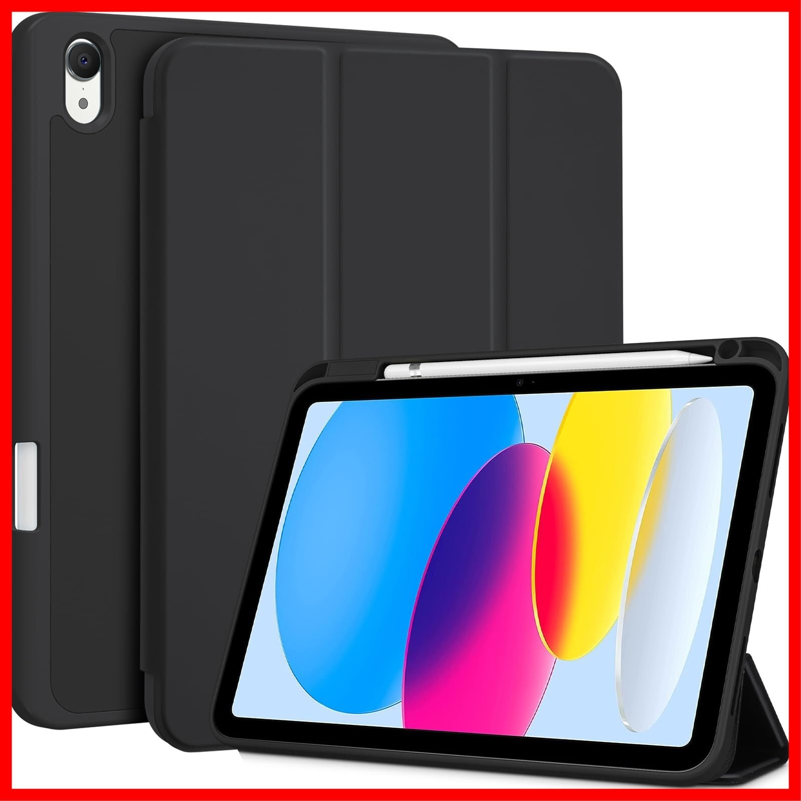 ProCase iPad 11世代/10世代 ケース iPad(A16)11インチ 2025/10.9インチ 2022通用 A2696 A2757 A2777 ペン収納 弾性のあるTPUバック 耐衝撃 三つ折り スタンド スマートカバー(ブラック) | hananoki