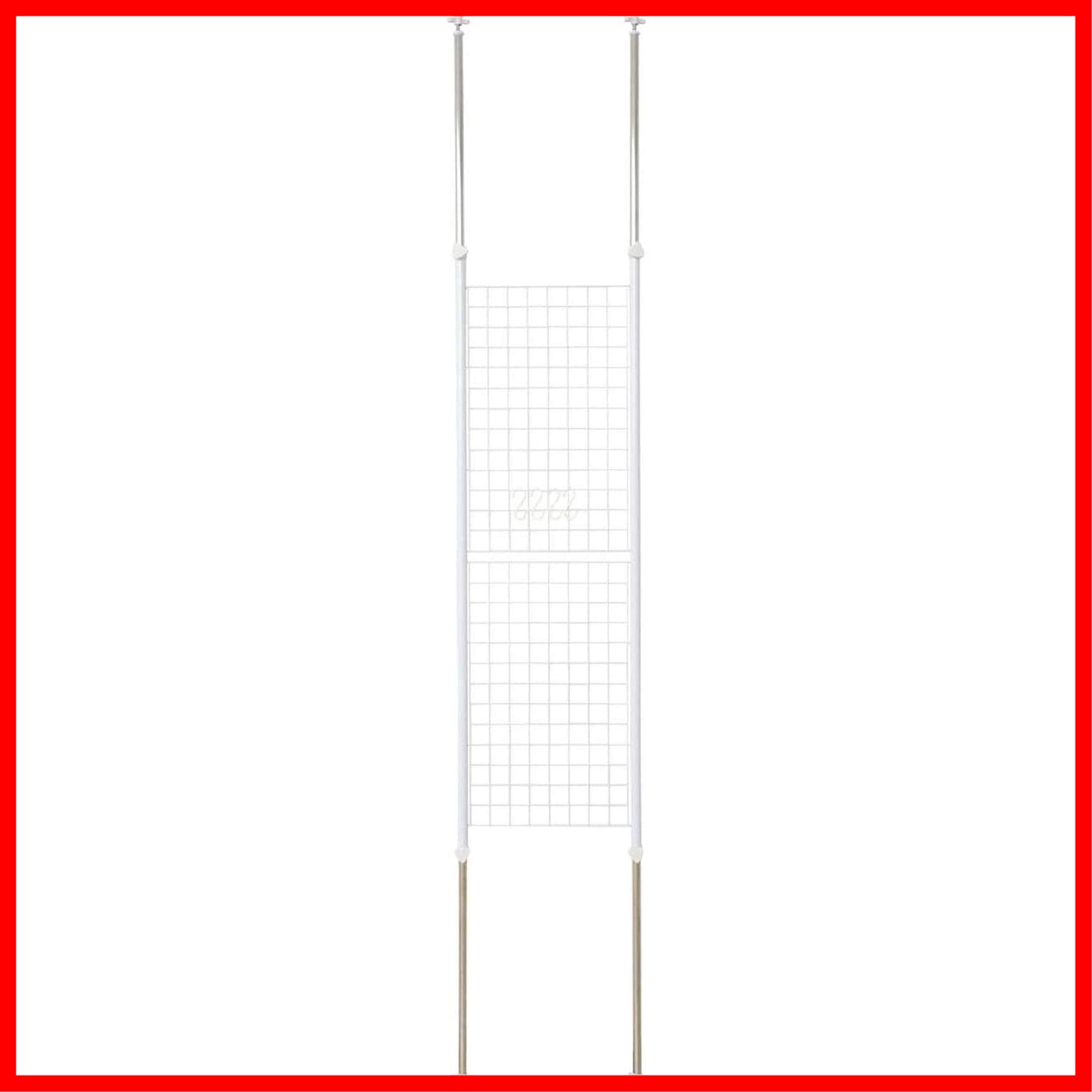 山善(YAMAZEN) 突っ張り パーテーション (ワイヤータイプ) 幅45×奥行5×高さ166.5-295.5cm (フック4個付き) 壁掛け 収納 壁面収納 天井 間仕切り 組立品 ホワイト SP-45(W) | hananoki