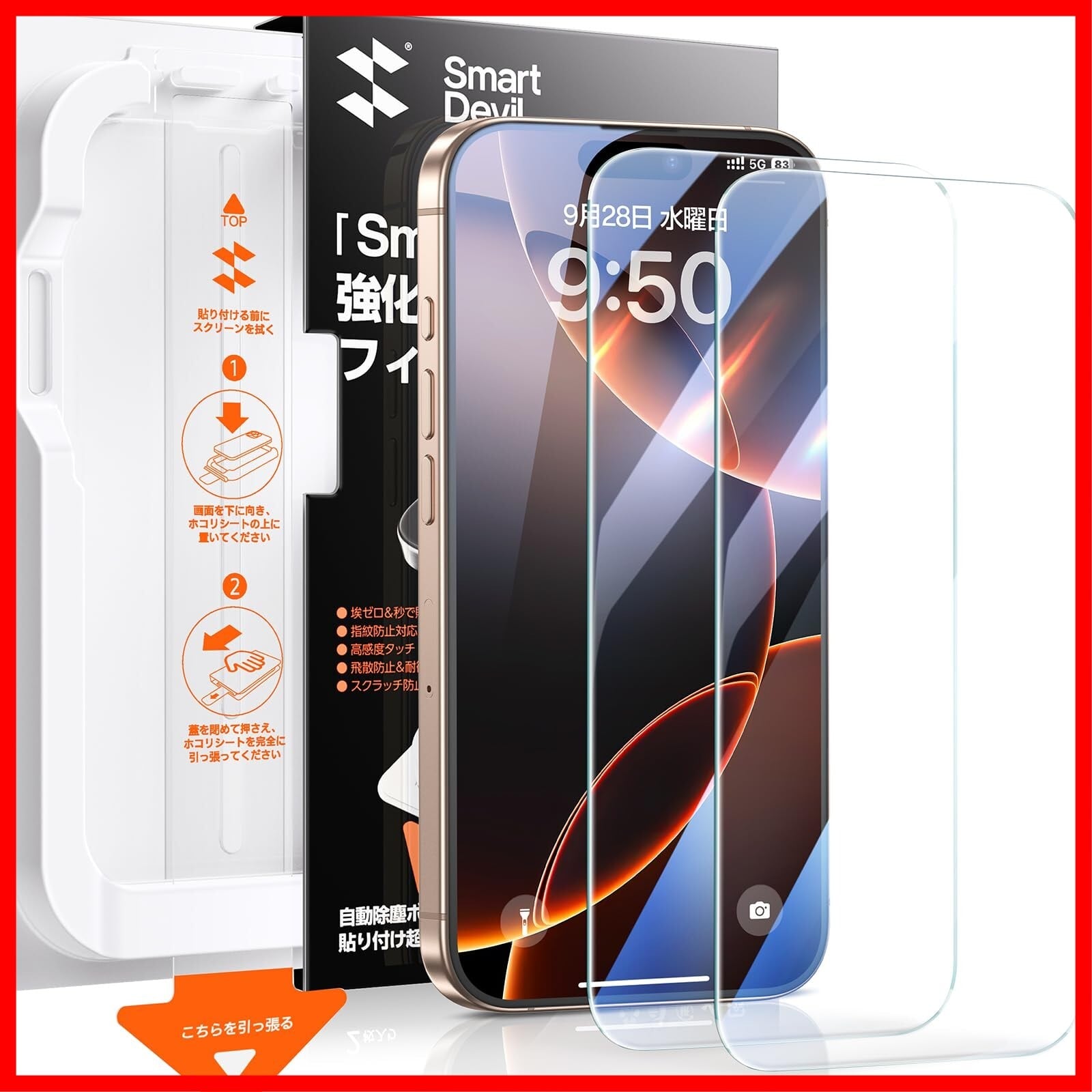 【超クリア・超簡単】 SmartDevil iPhone16 Pro Max 用 ガラスフィルム 一体式ガイド枠付き 貼り付け簡単 HDクリア 位置ずれない 気泡ゼロ 9H硬度 指紋軽減 2.5Dラウンドエッジ加工 光沢タイプ ツルツル いphone16 Pro Max 用 保護フィルム 2枚セット | hananoki