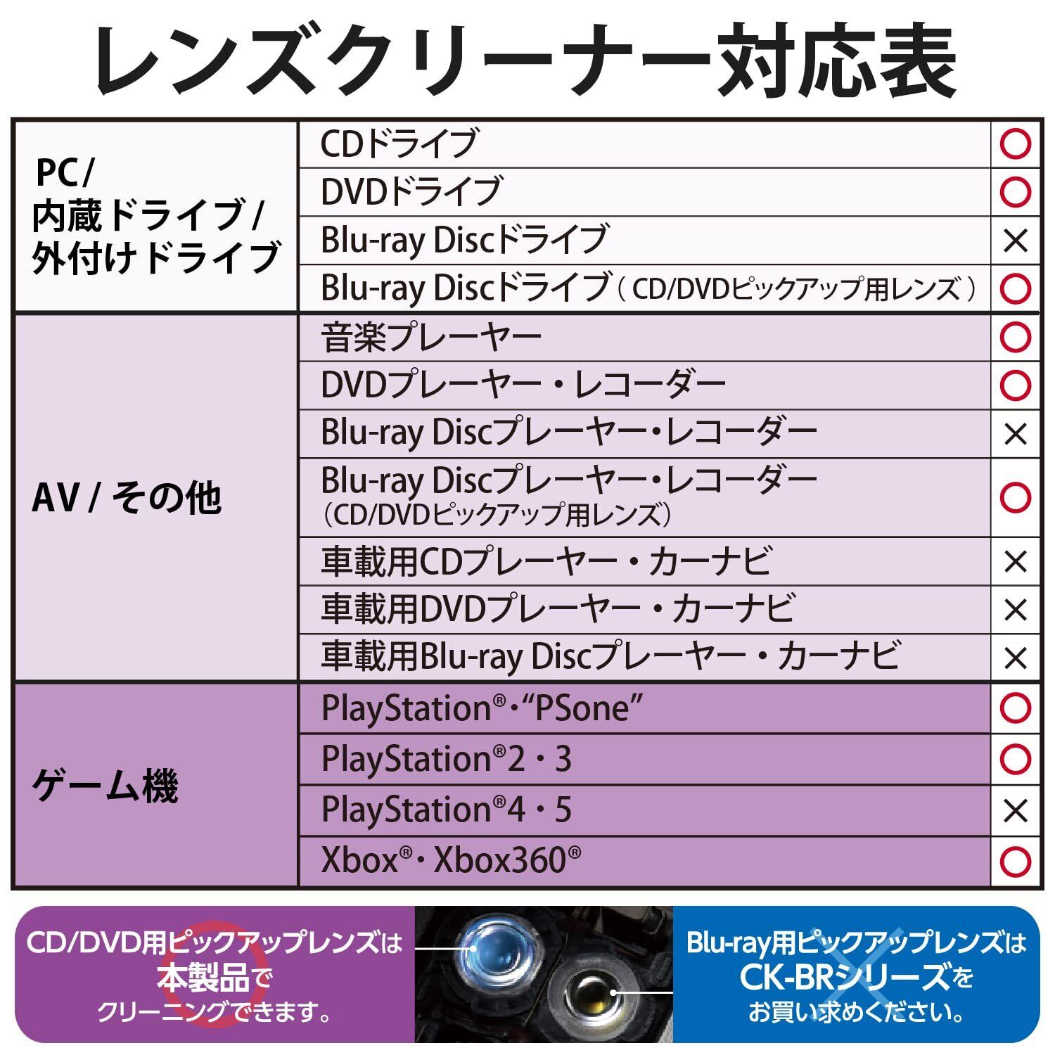※ 音楽CDが再生できない機器にはご使用できません。※Blu-ray Discプレーヤー/ドライブには読み取りレンズが2種類あります。本製品はCD/DVD用読み取りレンズ専用です。