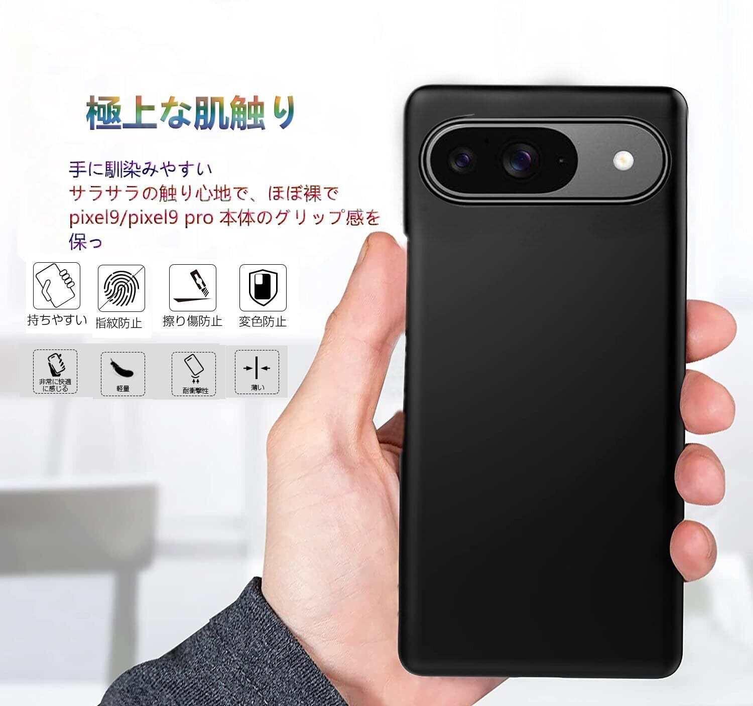 極薄 Google pixel9 ケース/pixel9 pro ケース 薄型 Google pixel 9/pixel 9 pro ケース PCマット質感 超軽量 黄変防止 指紋防 擦り傷防止 手触り良い 全面保護 超耐磨 耐衝撃ピクセル9/9 pro カバー ワイヤレス充電対応 ブラック