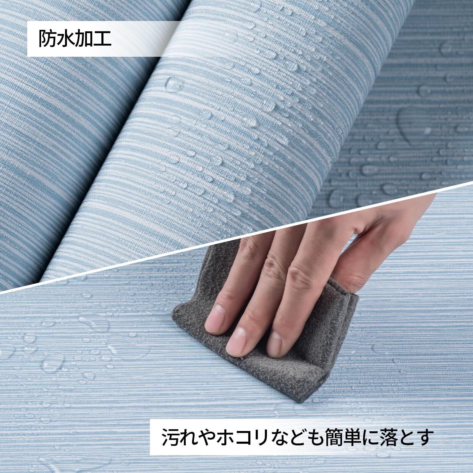 お部屋の模様替えが楽々:シートの裏面はシール状になっていて、施工するときは台紙を剥がしてペタッと貼るだけ。ビニール素材を採用し撥水加工が施されているので、防水防油性が特徴、化学臭いもしません。テーブルやキッチン周り、トイレなど、水濡れが気になる場所でもお使いいただけます。