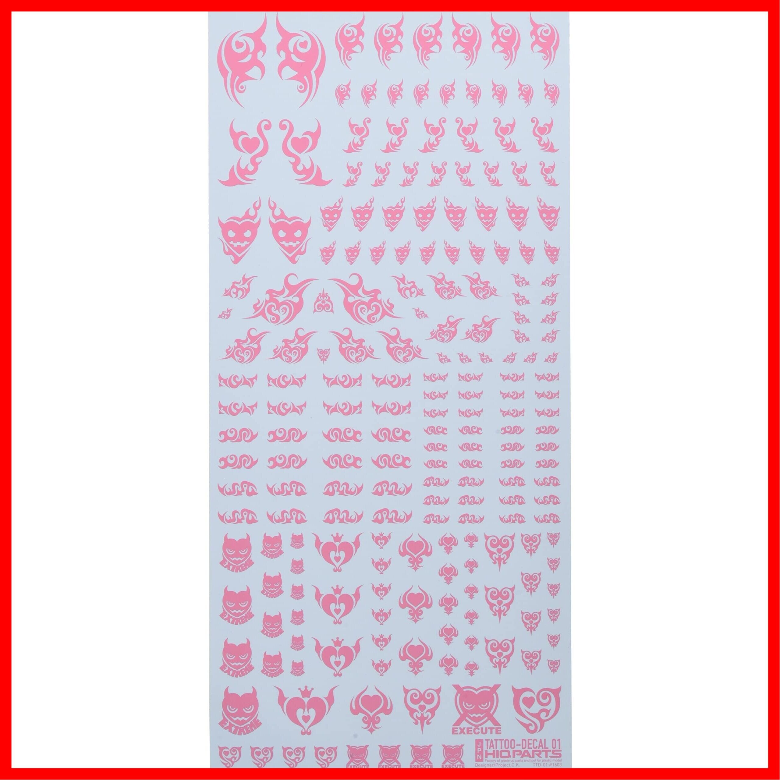 1/12フィギュアのカスタムアップ用、「ハート」をモチーフにした水転写式タトゥーデカールです。
