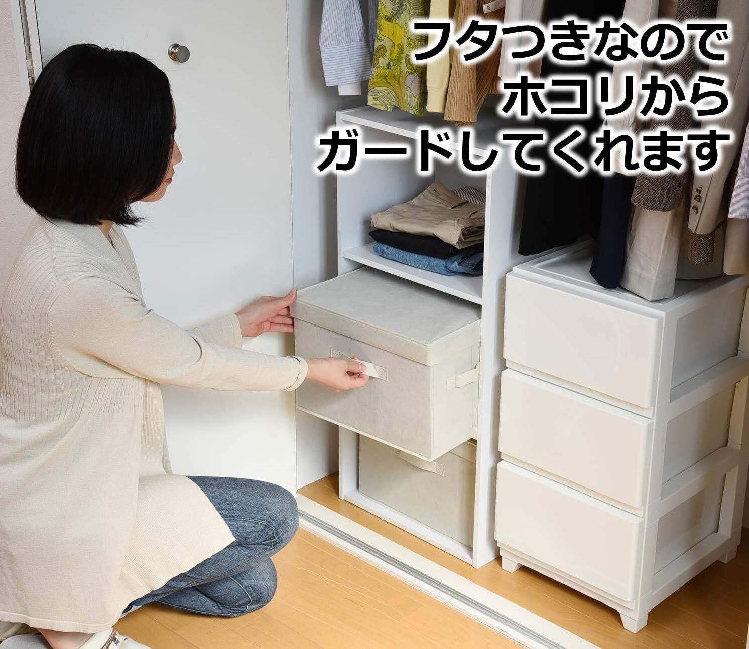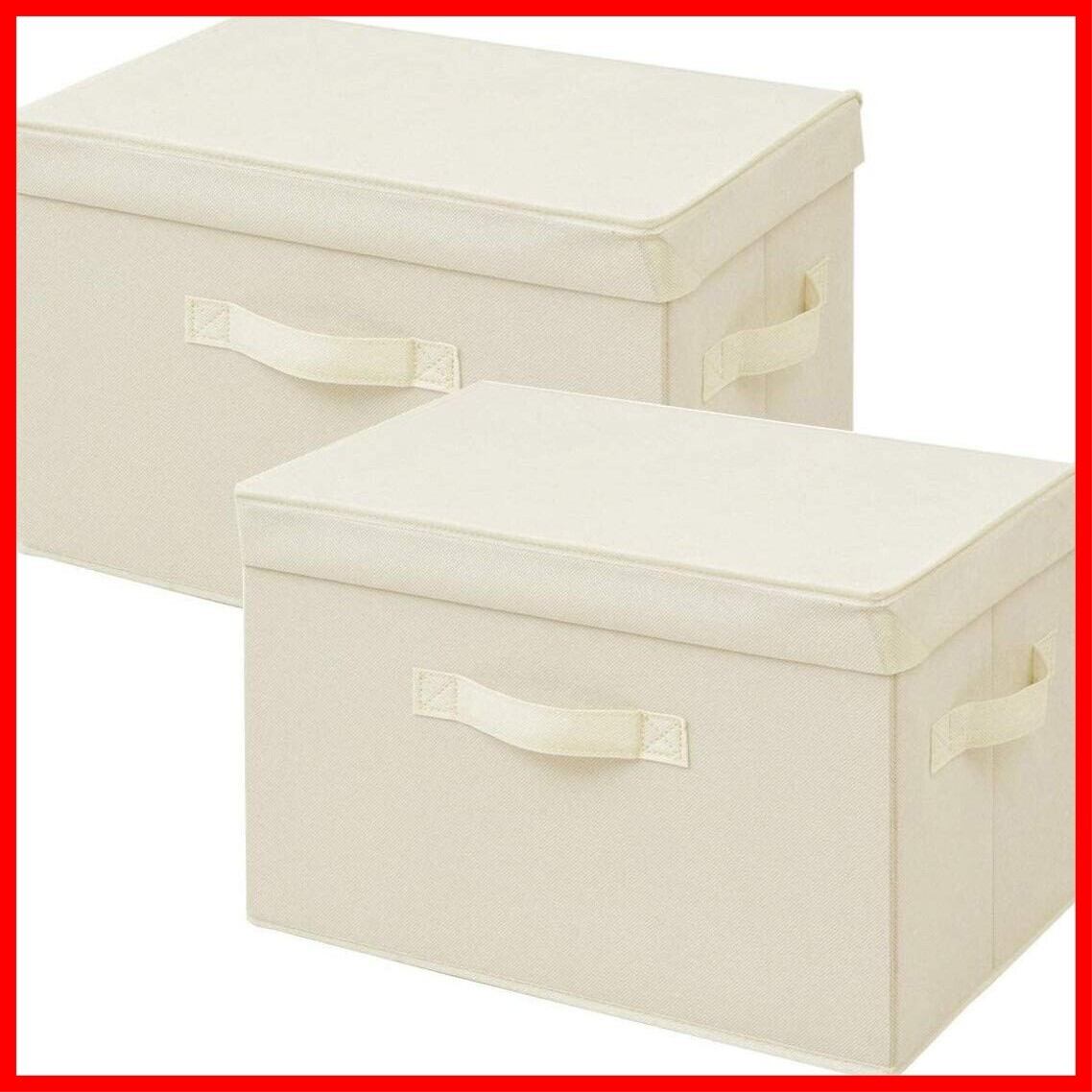 山善(YAMAZEN) ふた付き 収納ボックス 幅38×奥行25×高さ25cm 取っ手付き カラーボックス対応 完成品 アイボリー 2個組 YTCF-2PF(IV)