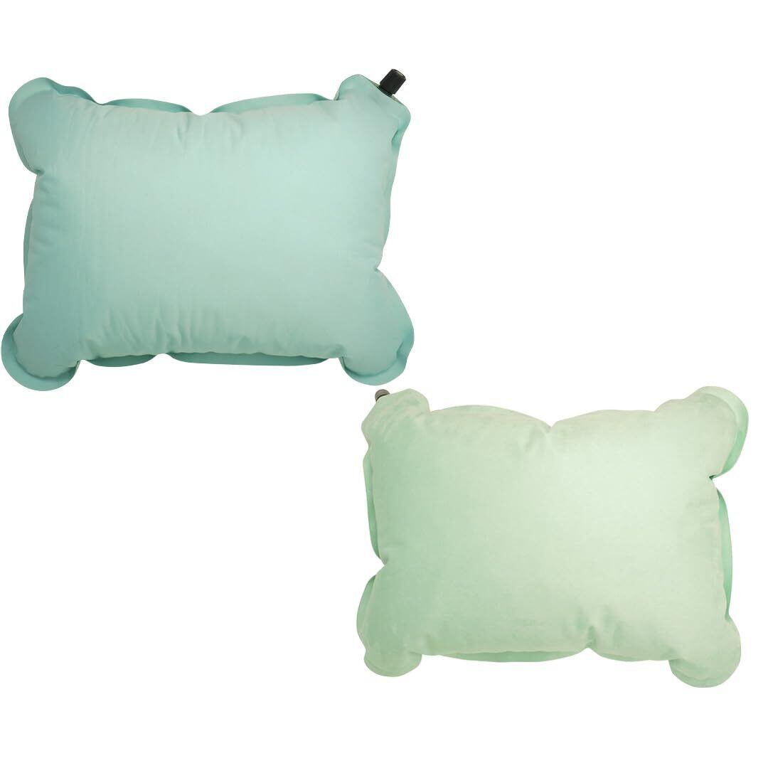 パステルカラー インフレーターピロー 枕 クッション グリーン 自動膨張 リバーシブル 収納袋付き