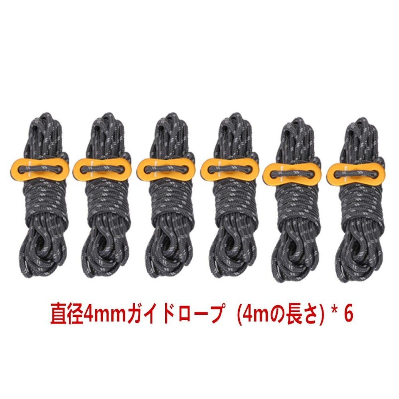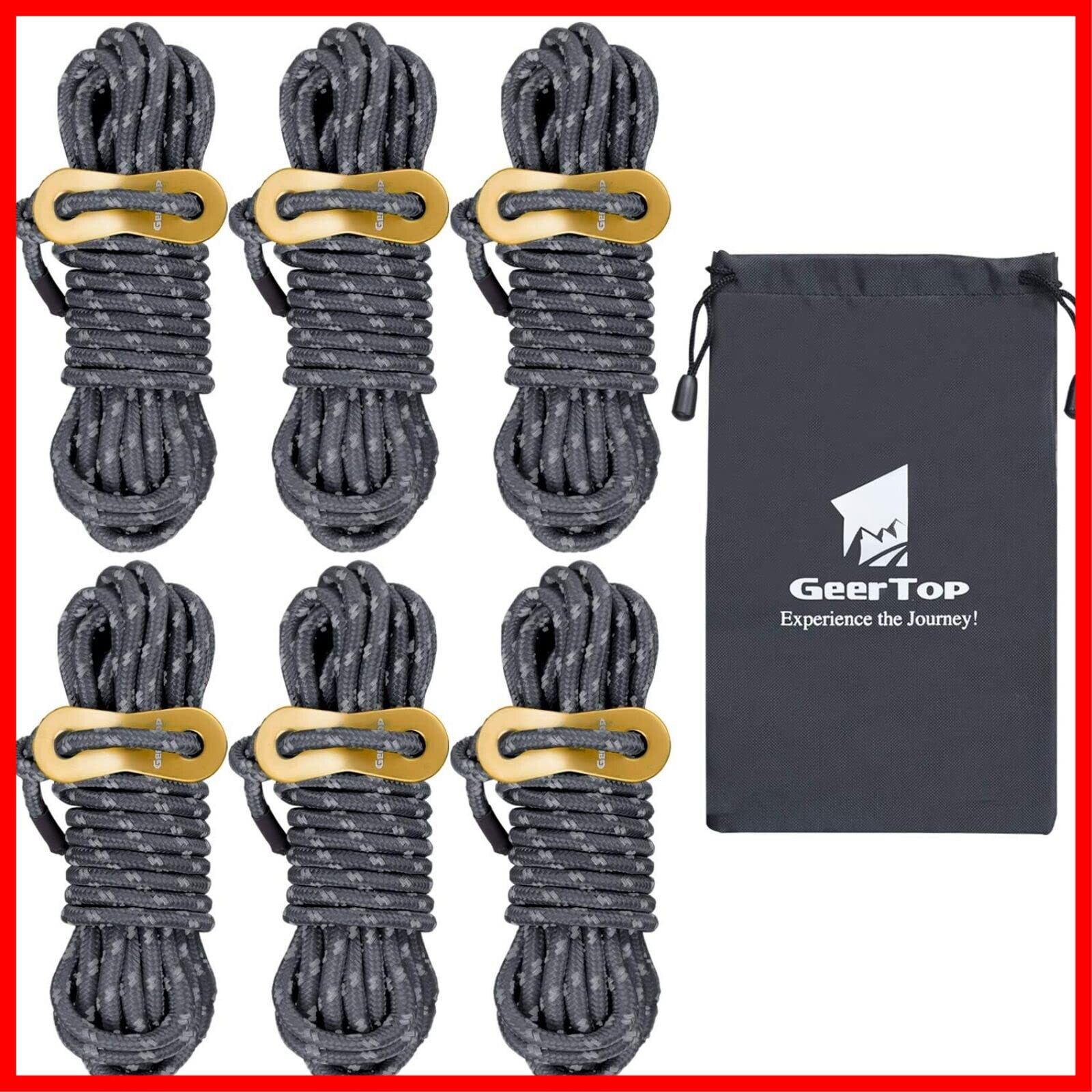 GEERTOP ガイロープ ロープ パラコード タープロープ テントロープ ガイライン 張り綱 4mm 6本 反射材 アルミ 自在金具付き 収納袋 耐荷重250kg キャンプ用品 テント設営 ダークグレー | hananoki