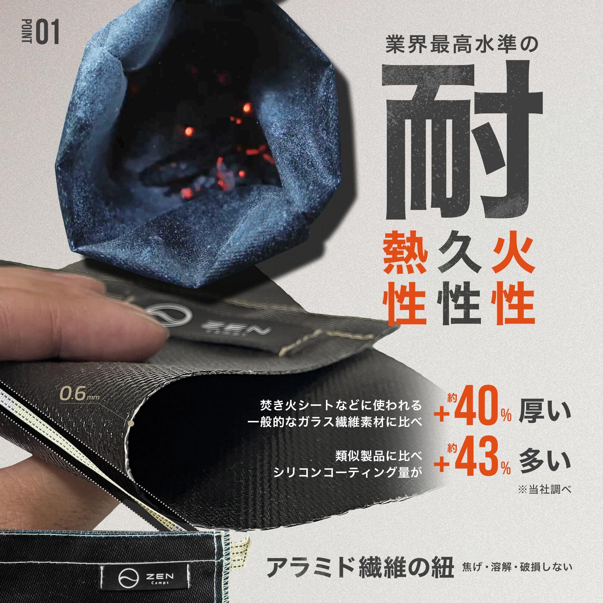 【使用上の注意点】自然環境保全のため、バーベキューやキャンプのあとは、薪や炭はすべて消火し持ち帰りましょう。ガラス繊維にシリコンコーティングの袋に特殊縫製によって機密性を高め、さらなる強度と密閉性を向上させております。瞬間耐熱温度1500℃、常時耐熱温度550℃と非常に高温に強く安心安全な商品に作りこんでいますが、火消袋は火消しツボではないので、炎が上がっていたり、まだ高温の燃えカスを入れないでください。最悪の場合、破損します。おおよそ鎮火している炭や薪の燃えカスを入れてください。