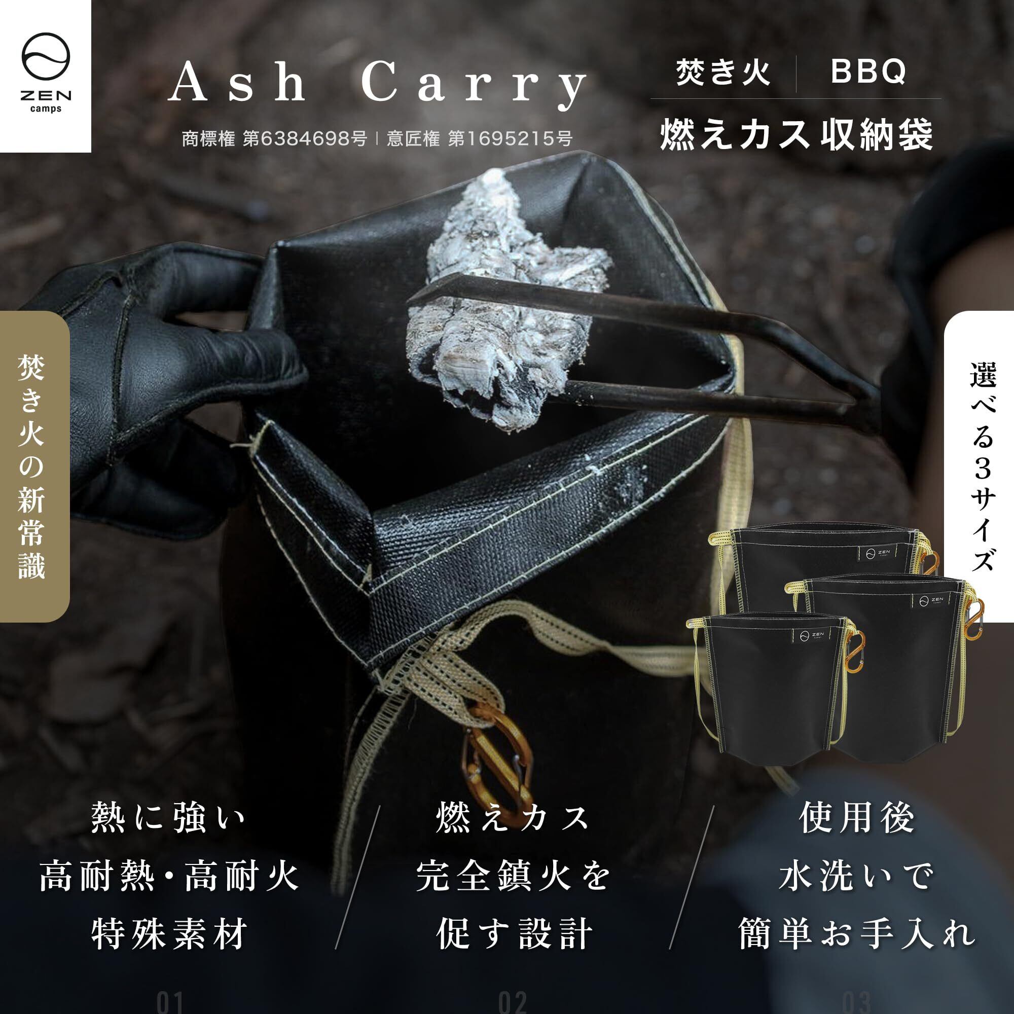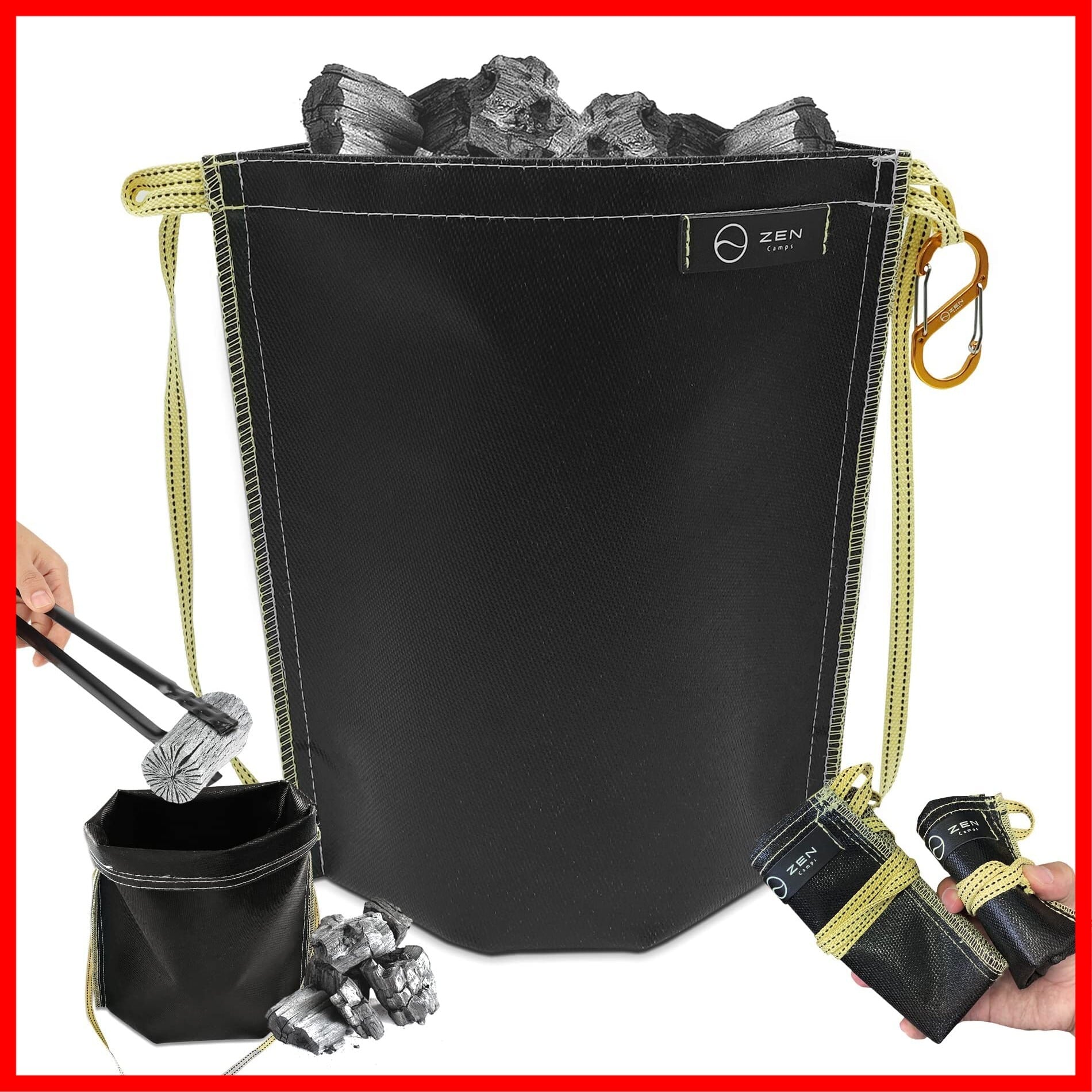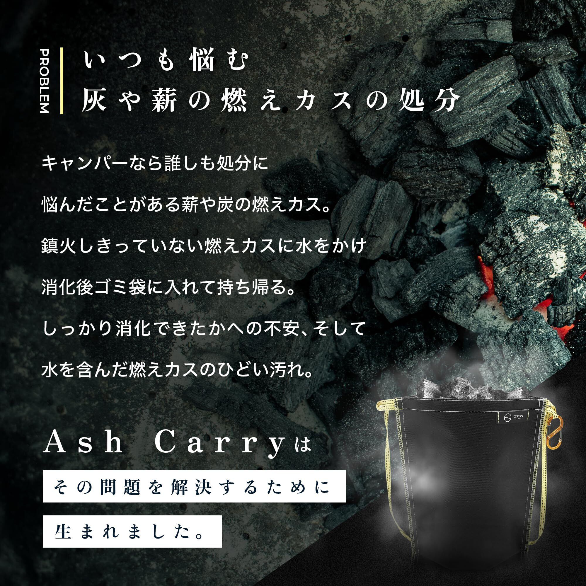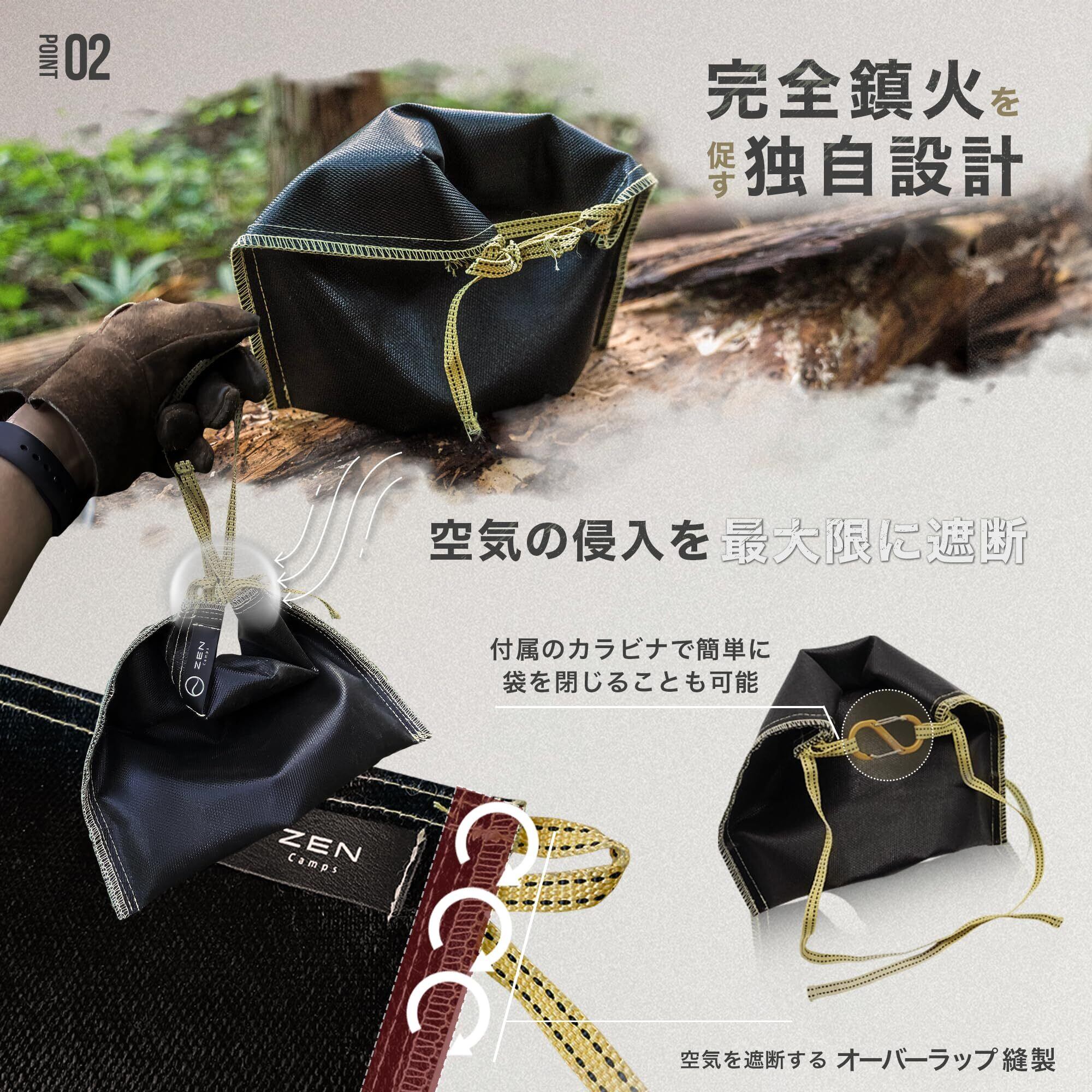 ZEN Camps 火消し袋 アッシュキャリー 炭処理袋 炭消し袋 炭袋 防水 自立 Ash Carry キャンプ 耐熱性 難燃性 コンパクト 大容量【日本ブランド】