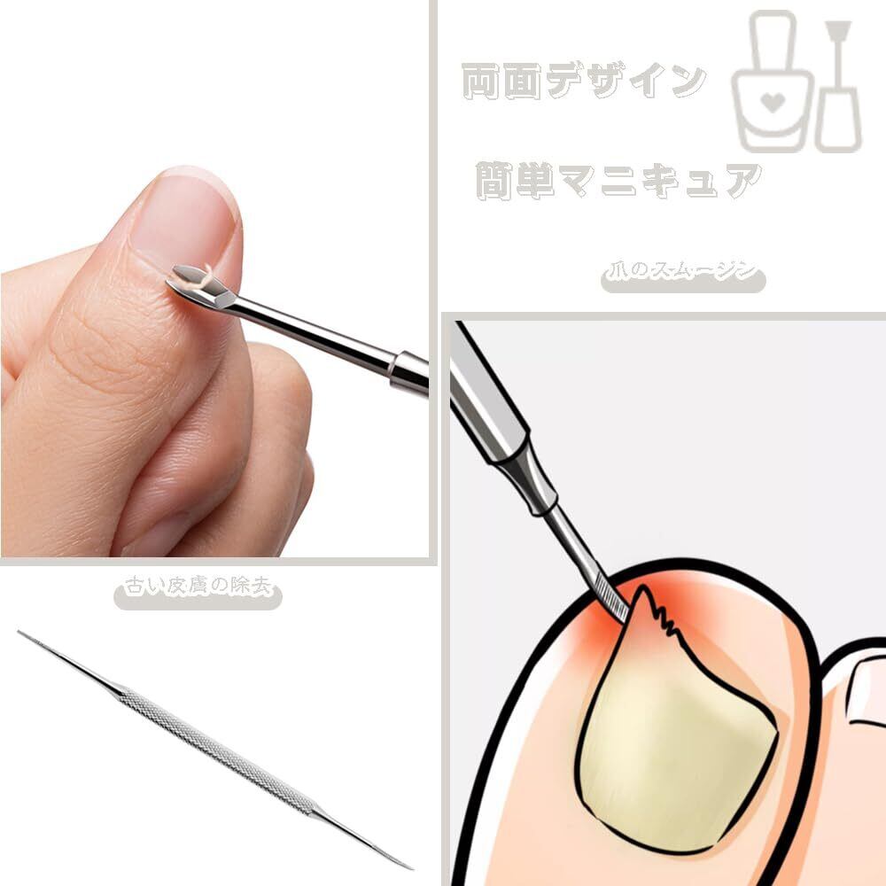 【使用方法】切りにくい硬い爪や変形した爪も、切りたい部分を狙って切ることができます。 ネイルキッカーで肉に食い込んだ爪のケア、ネイルクリッパーで爪のカット、ネイルファイルで甘皮の除去、ネイルファイルで爪の端の磨きなど、自宅でサロン並みのネイルケアが楽しめます。