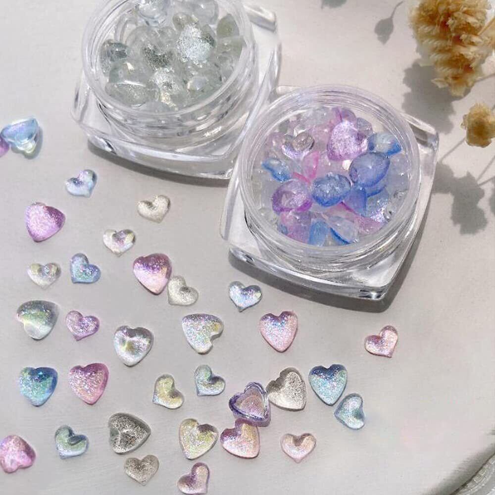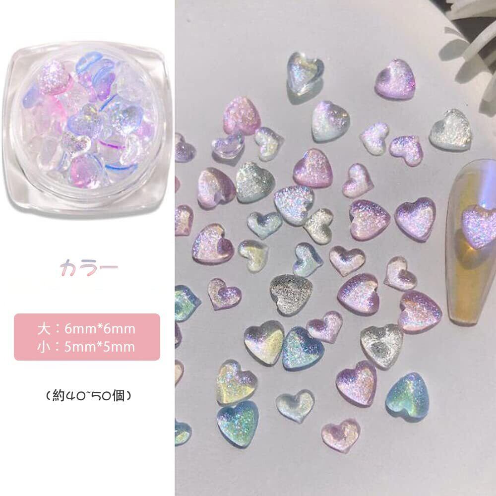 ネイルパーツ ネイルツール オーロラ 3d 立体 多色 ネイルストーン ハート型 レジン ネイル デコパーツ 5mm 6mm 約100個 (A)
