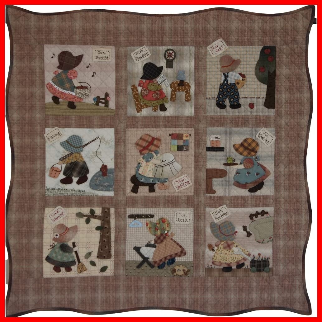 [柴田明美のパターンレシピ] スーちゃんの一週間 (写真付きレシピです、布などが入ったキットではございません)画像は出来上がり作品です。縦79cm×横79cmRT-31