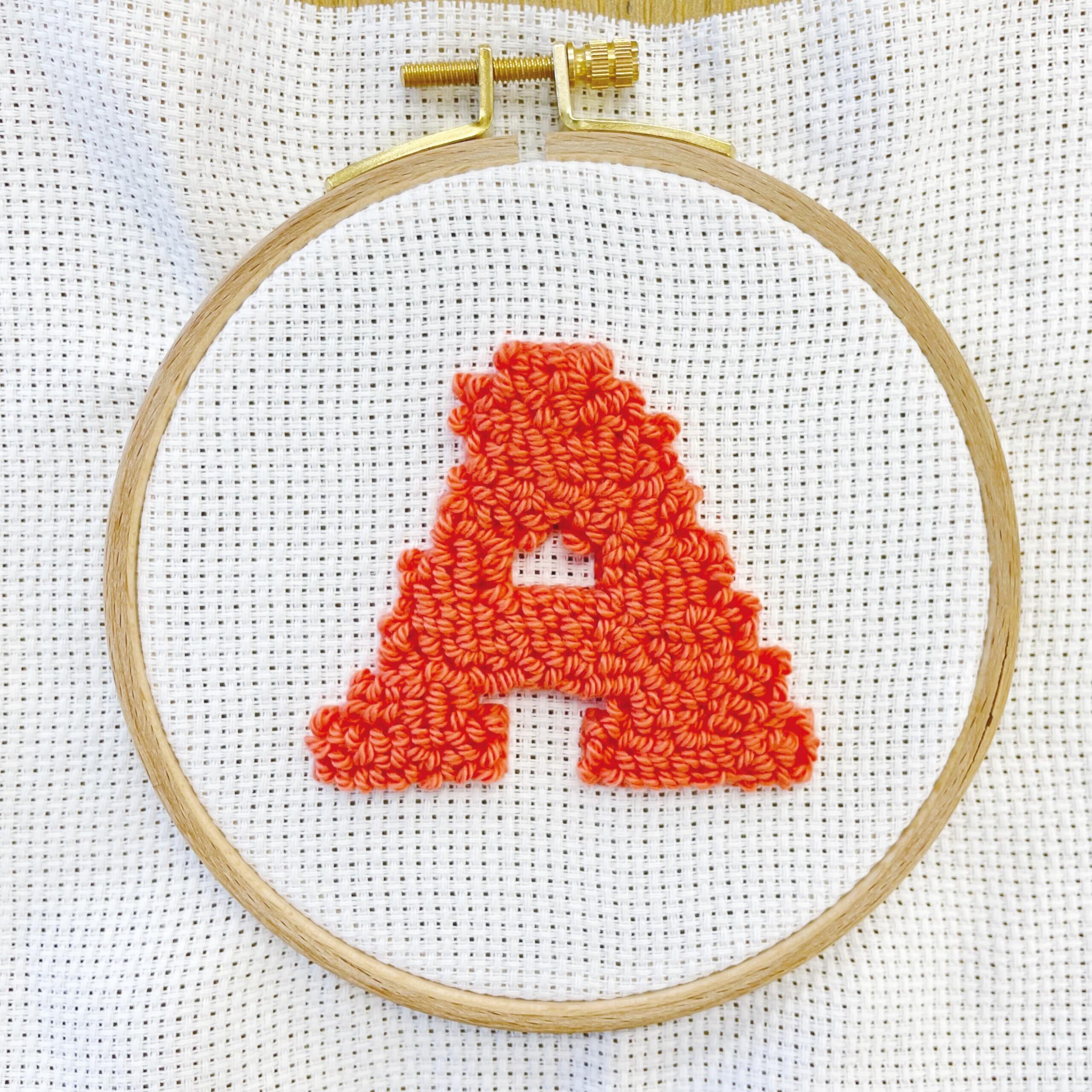 アルファベット図案、パンチニードルペン使用方法動画QRコード付きです。