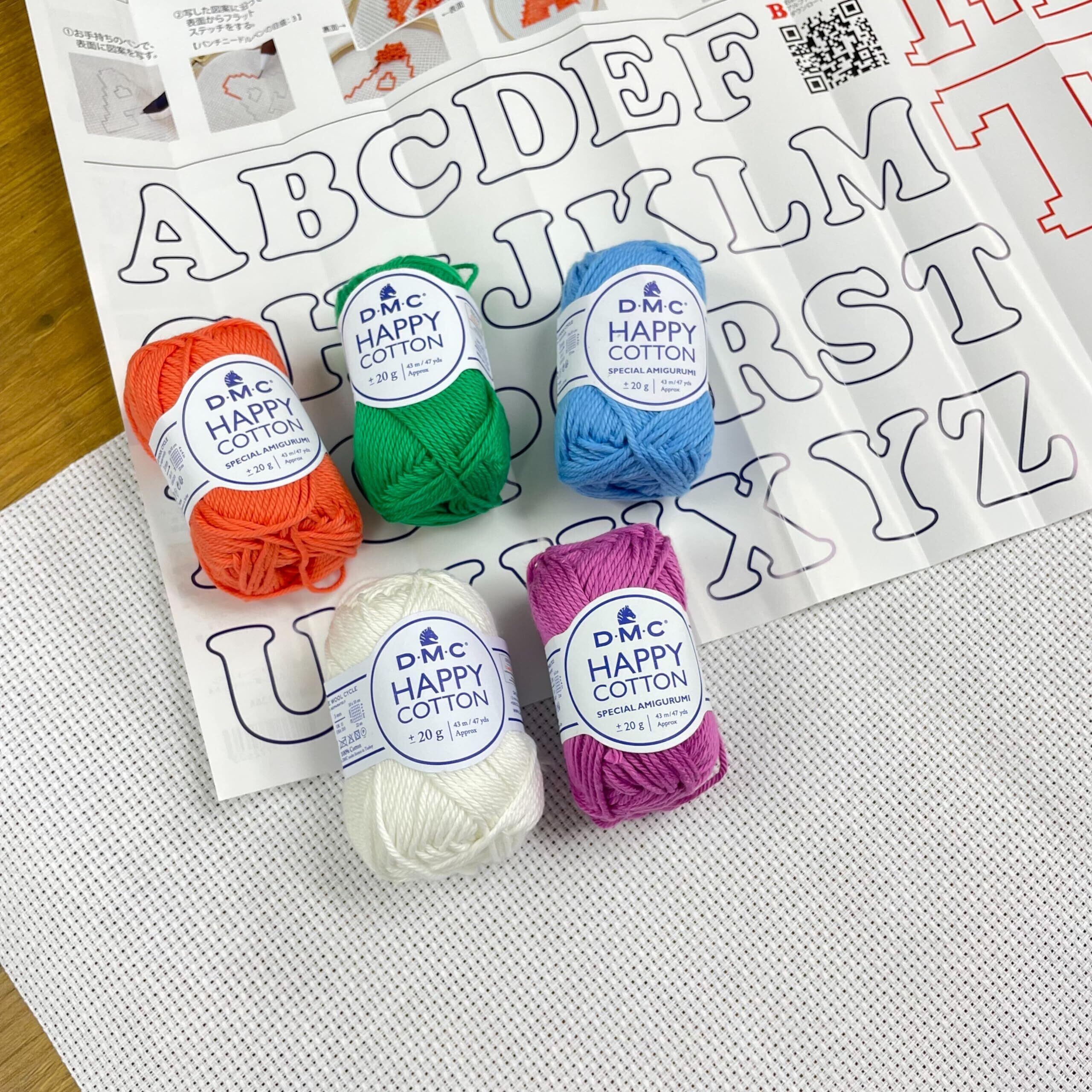 コットン糸:DMCハッピーコットン並太5色(753・761・781・795・797) 1玉約43m(20g) 素材:コットン100% 生産国:トルコ