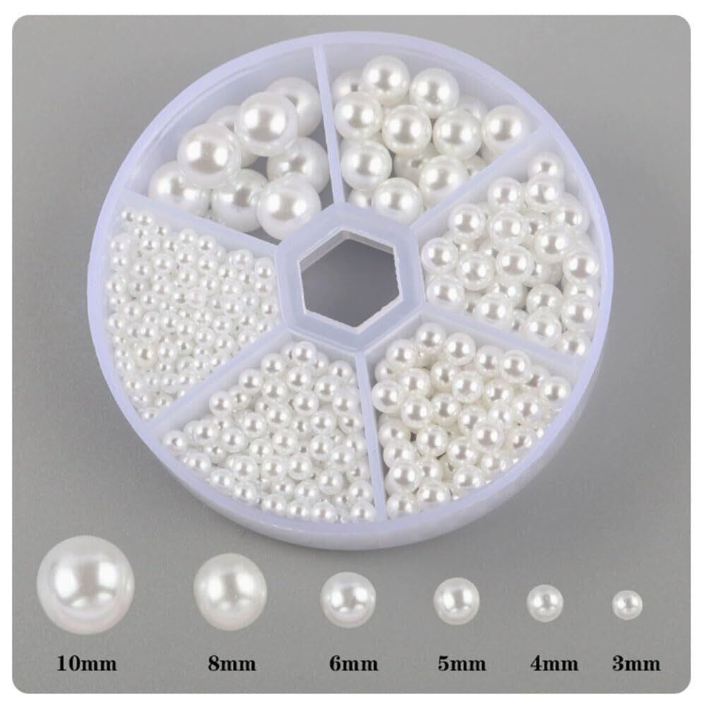 サムコス 樹脂パール パールビーズ 約700粒セット ラウンド 丸玉 穴なし 小さな 手芸用品 DIY 材料 縫製用 手作り 工芸品の装飾 ジュエリー用 ハンドメード ネックレス イヤリング ビーズセット 6サイズ (白)