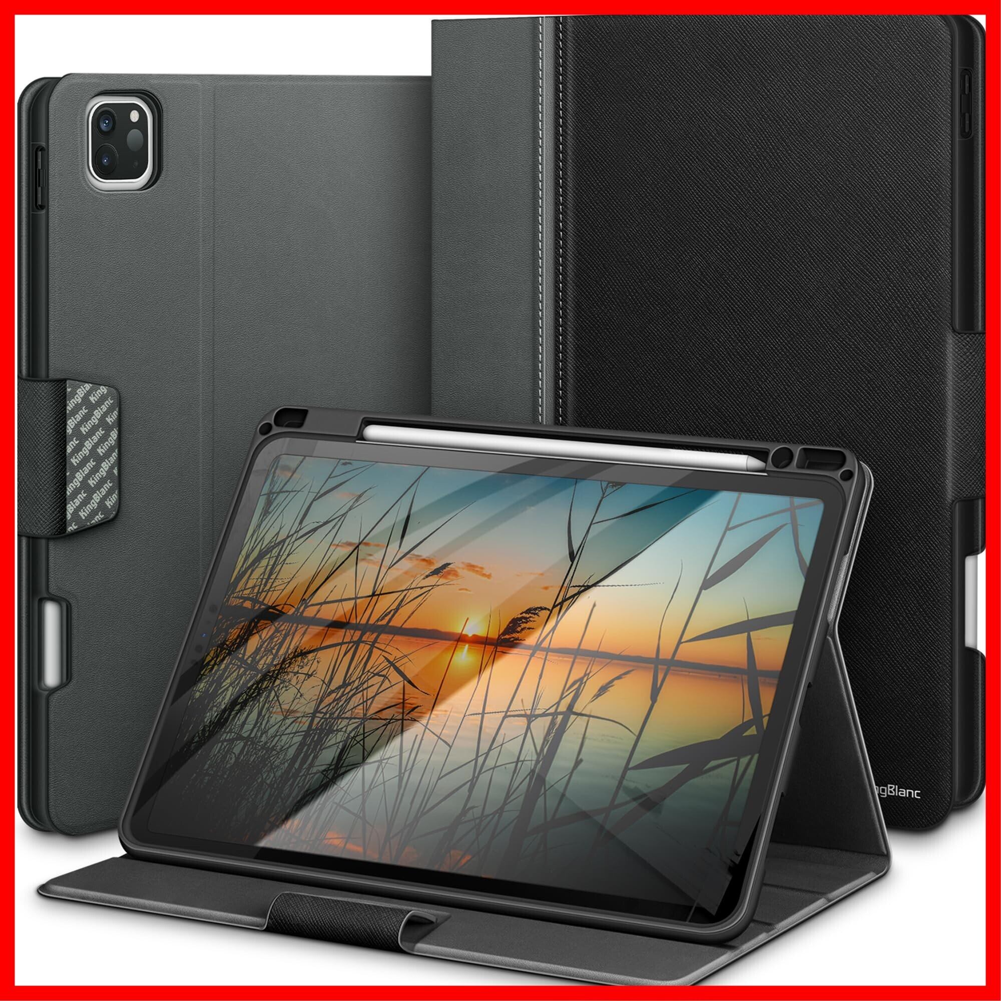 KingBlanc iPad Pro 11インチ ケース 第4/3/2/1世代 2022/2021/2020/2018 モデル兼用 手帳型 ペンホルダー付き Apple Pencil収納可能 ペアリング・ワイヤレス充電対応 オートスリープ・スタンド機能付き 高級PUレザー製 傷つけ防止 全面保護 カバー iPadPro11 対応, ブラック