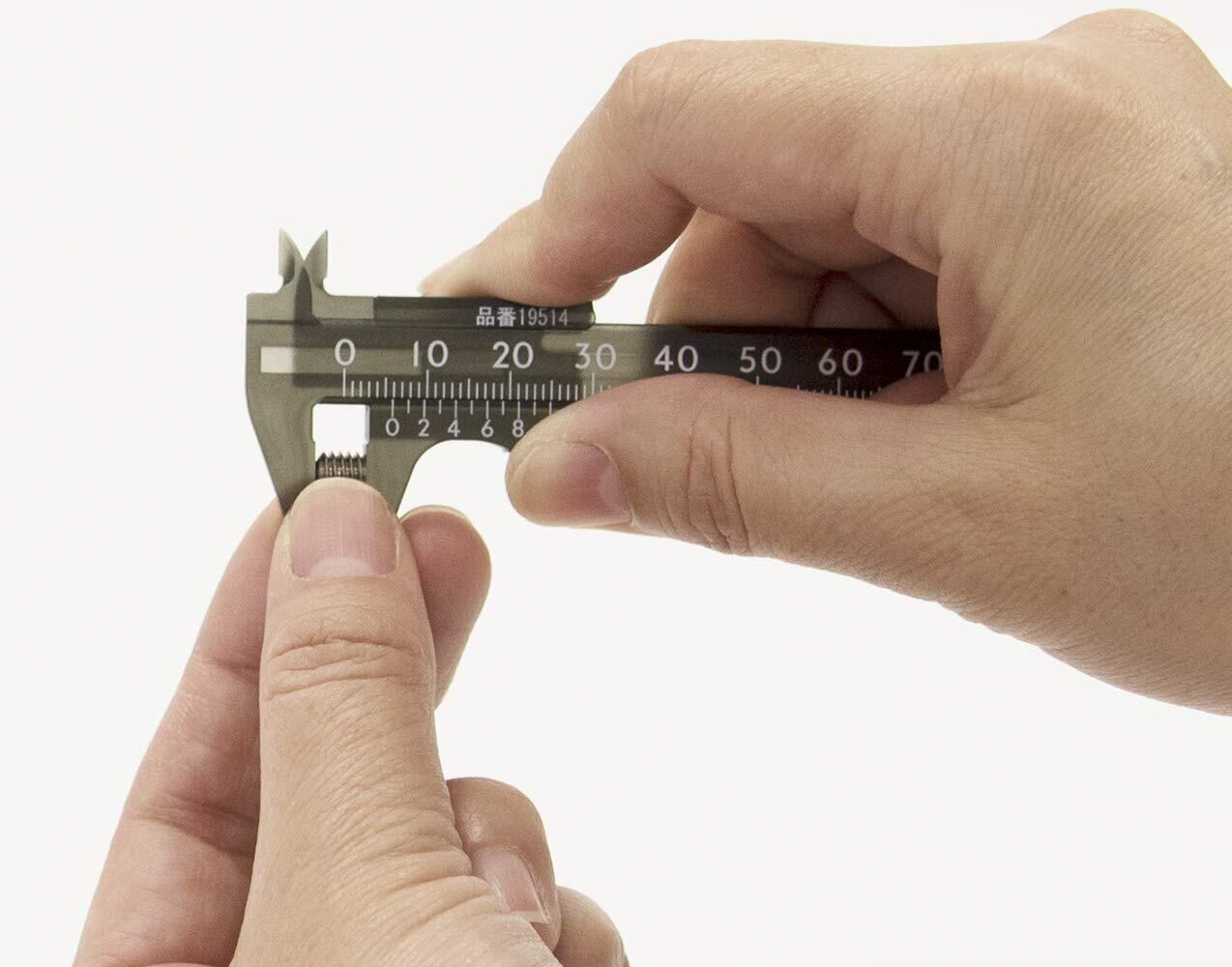 サイズ(全長):70mm測定範囲:0.1〜70mm重量:6g材質:ポリカーボネート