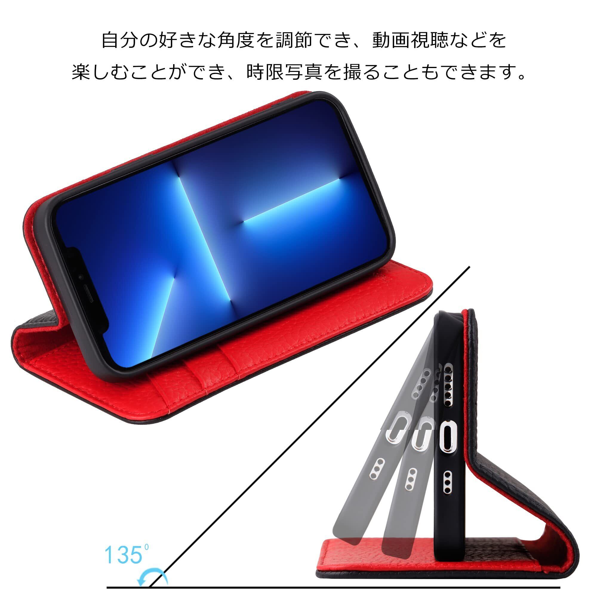【収納機能、横置きスタンド機能】iPhone13 Proケース内側に実用性のカード入れポケット×4、内側ポケット×1、カード類、現金、名刺、免許証入れなどを収納でき、通勤も通学にも楽々タイプです。マグネットが内蔵されているので、ベルトがなくてもフタがぴったり閉まります。横置きスタンド機能が付きまして、好きな角度を調節できて、手放しでも動画視聴や読書に楽しめる。