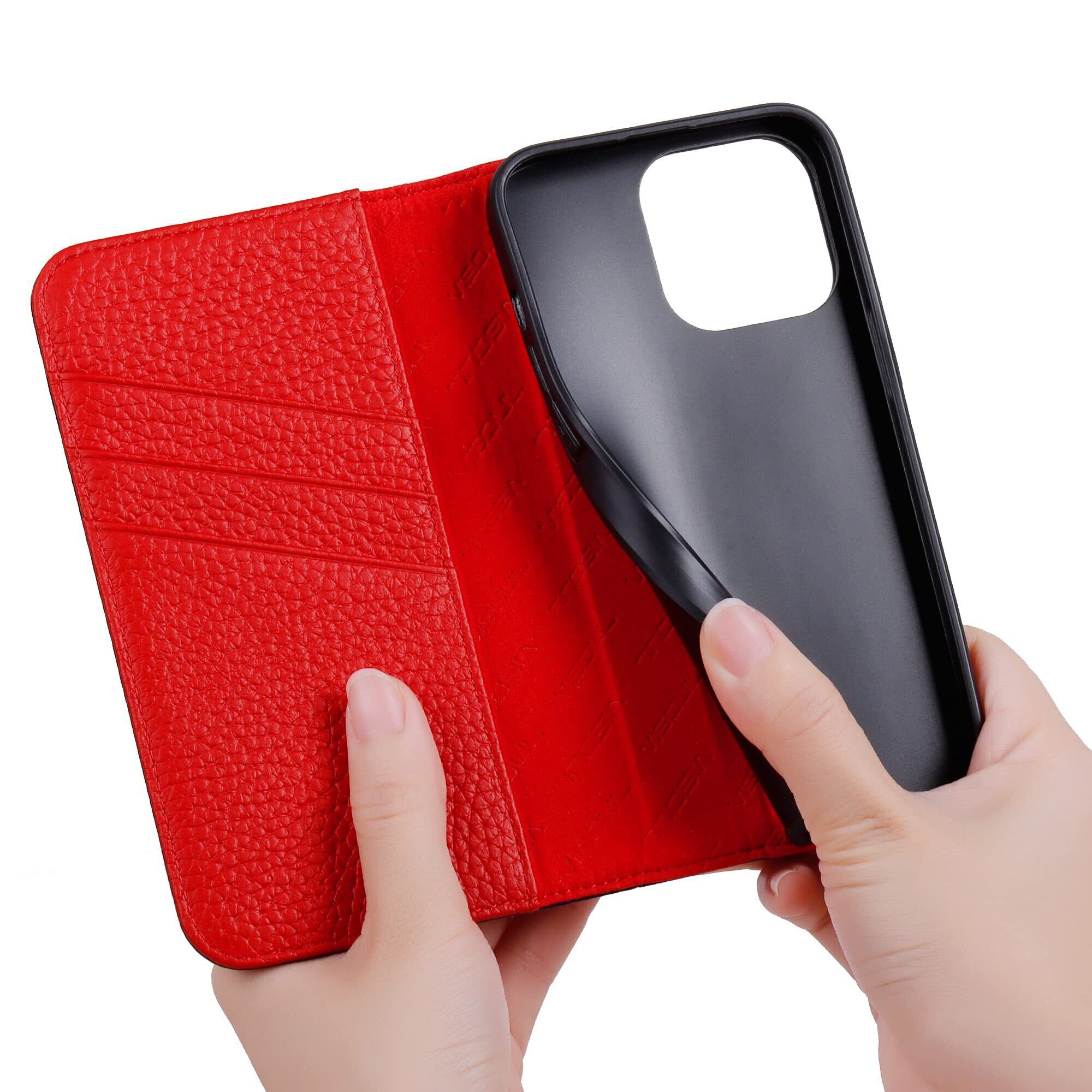 VISOUL iPhone 13 Pro ケース アイフォン13 プロケース 手帳型 本革 レザー スマホケース カード収納 携帯ケース 全面保護 マグネット 横置きスタンド機能付き iPhone 13 Pro ケース 対応 6.1インチ シュリンクレザー iphone 13 Pro レッド | hananoki